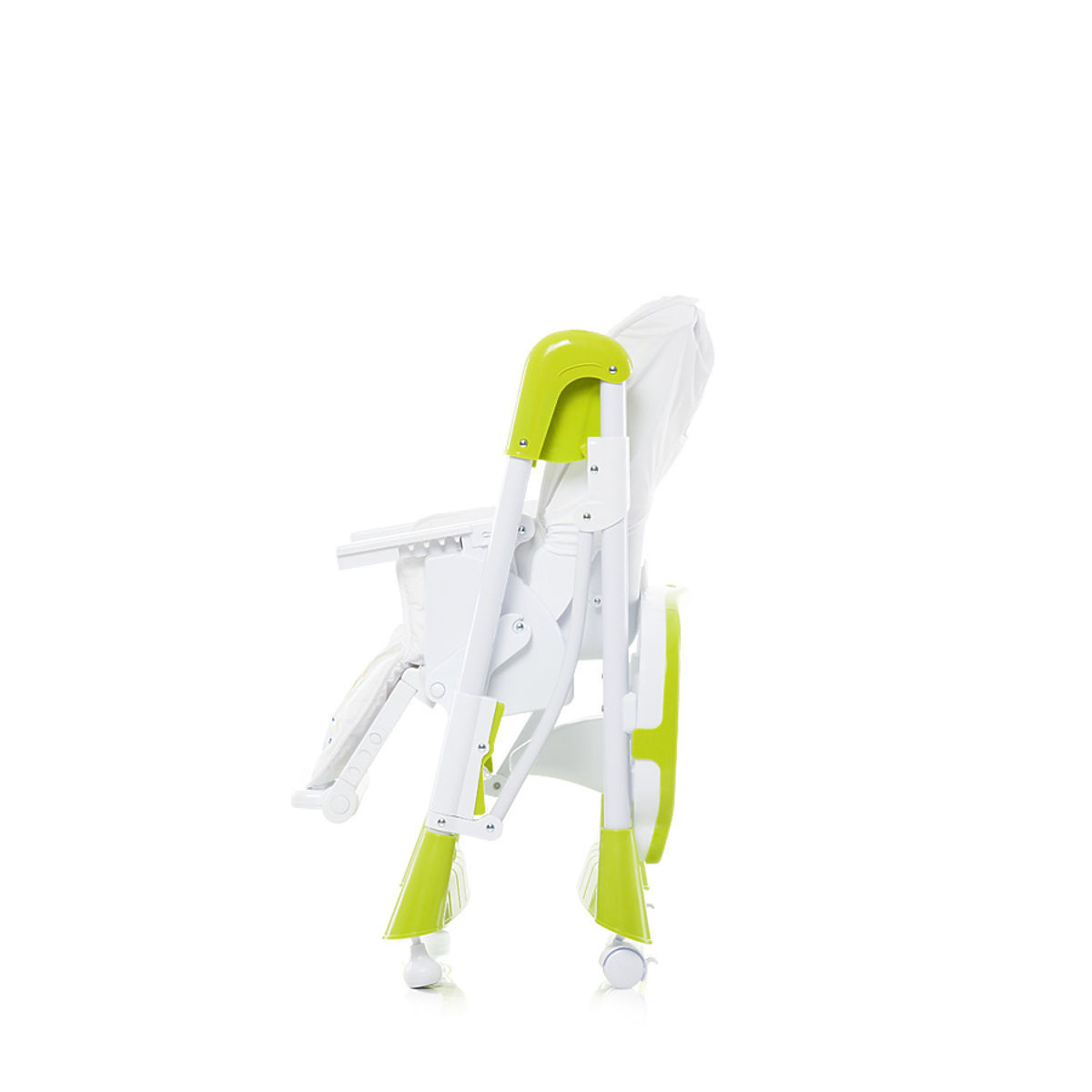 Des Weiteren gibt es einen doppelten Tablet. Das obere Tablet kann entfernt und gereinigt werden. Das Tablett kann in vier Positionen eingestellt werden, je nach Alter des Kindes. In dem Sitz ist eine T- Sicherheitsbarriere, der das Kind am Herausfallen hindert.