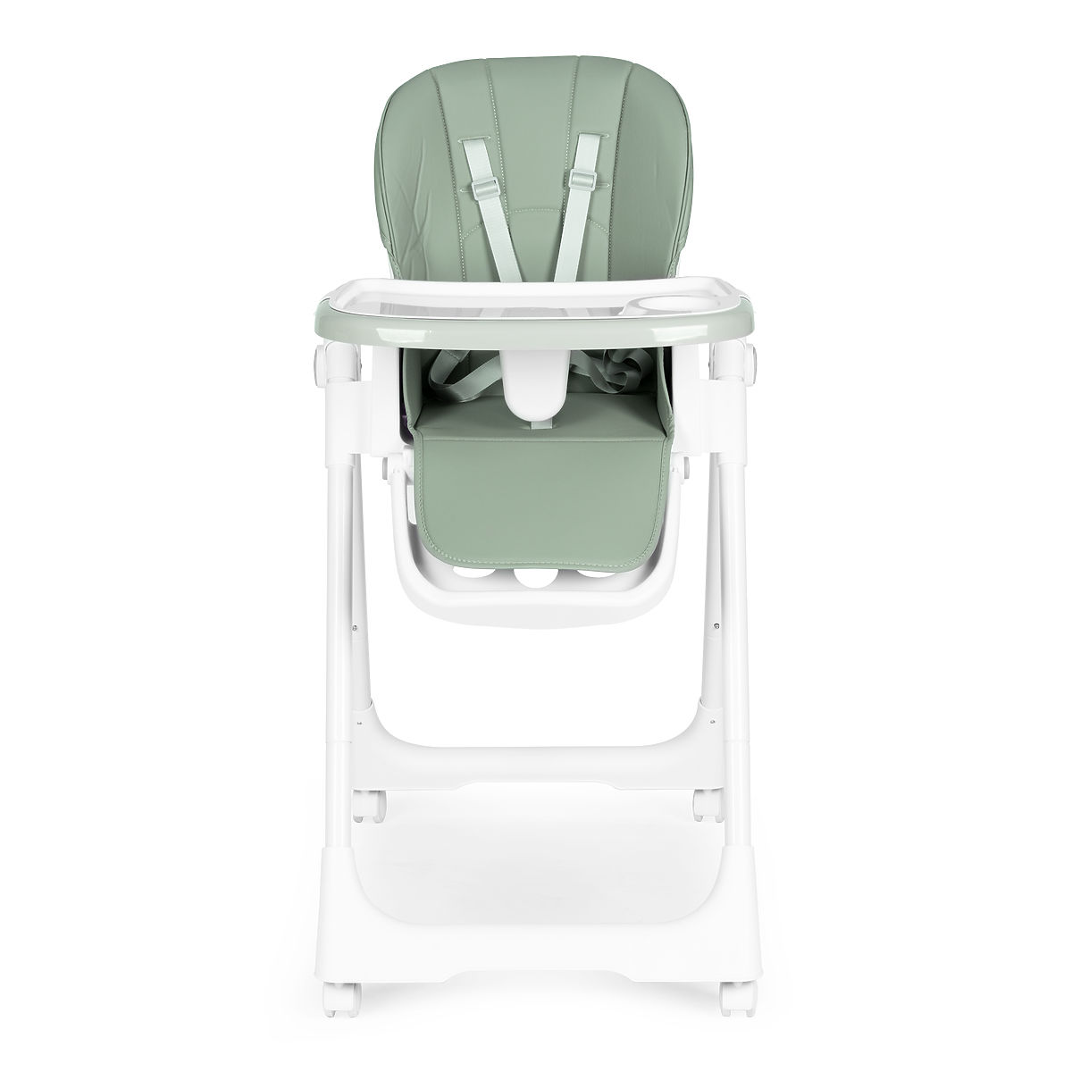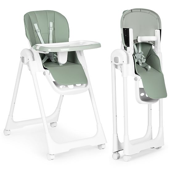 SICHERE RÄDERDie Beine des Hochstuhls sind mit Rädern ausgestattet, die ein Blockierelement für ihre Drehung haben, mit einer Bewegung können Sie sie blockieren und die gesamte Konstruktion effektiv immobilisieren. Die Räder erleichtern das Verschieben des Hochstuhls an den gewünschten Ort und ihre Gummilauffläche schützt den Boden vor Kratzern.