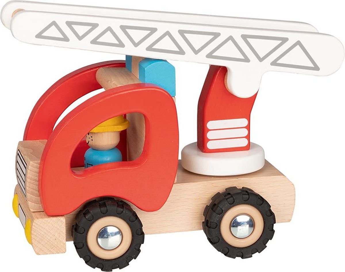 Feuerwehrmann zu werden ist der Traum vieler Jungen. Wenn Ihr Junge denselben Traum hat, sind Sie hier genau richtig. Das Feuerwehrfahrzeug von Goki ist ein großartiger Vorschlag für ein Spielzeug für kleine Jungs. Es ist komplett aus Holz gefertigt, nur die Räder haben eine Gummibeschichtung. Das Auto wird von einem hölzernen Feuerwehrmann gesteuert. Auf der Ladefläche befindet sich eine Leiter, mit der er zur Rettung eilt! Die Leiter kann in verschiedenen Winkeln eingestellt und gedreht werden. Großer Spaß ist garantiert. Durch das Spielen entwickelt das Kind seine Vorstellung von der Arbeit eines Feuerwehrmanns. Wer weiß, vielleicht wird er es in Zukunft? Alles ist in schönen Farben gehalten. Verpackt in einer eleganten Verpackung.