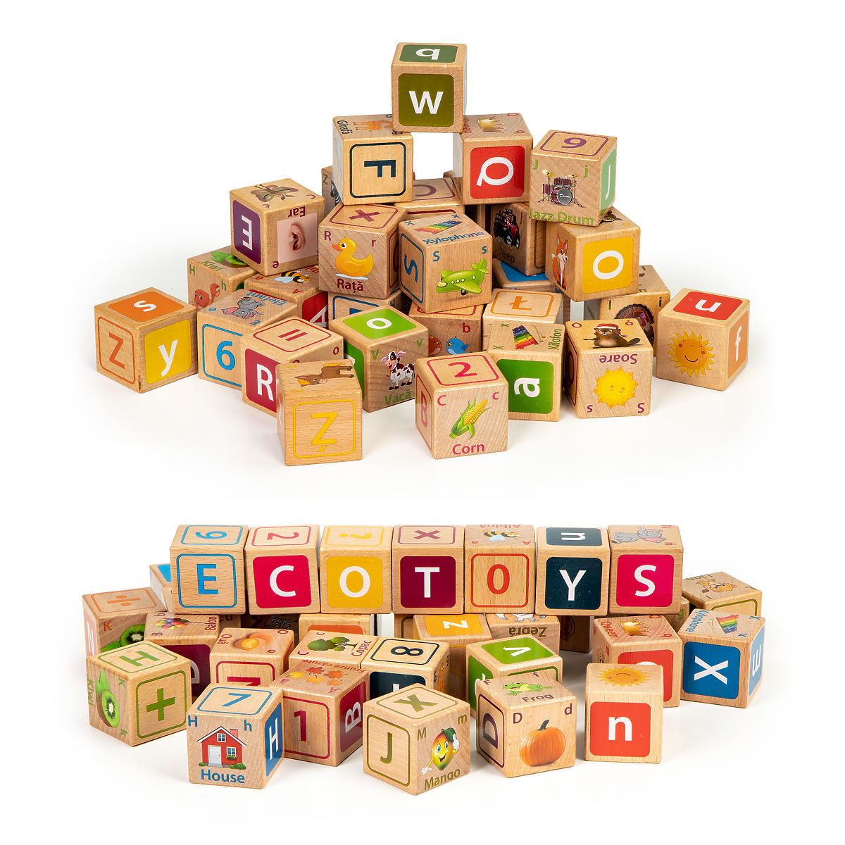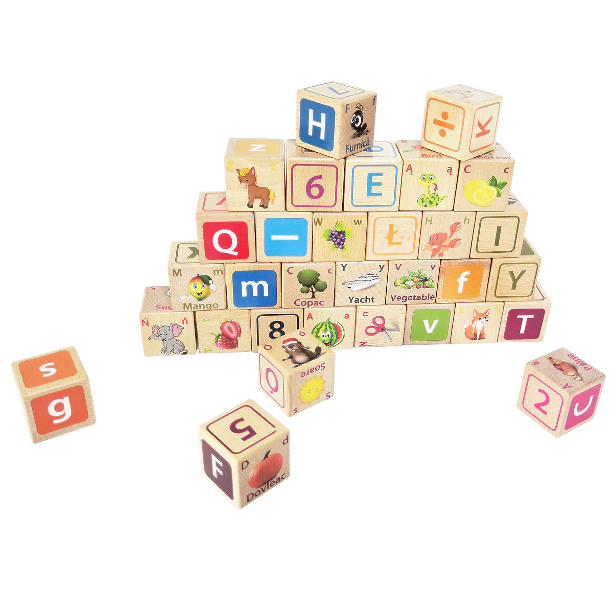 Das farbige Holzset enthält Würfel mit einfachen Zahlen, Buchstaben und einfachen Bildern. Dieses Kit entwickelt das Kind spielerisch. Die Zuordnung der einzelnen Würfel fördert das logische Denken und trägt auch zu einer wichtigen Hand-Augen-Koordination bei.