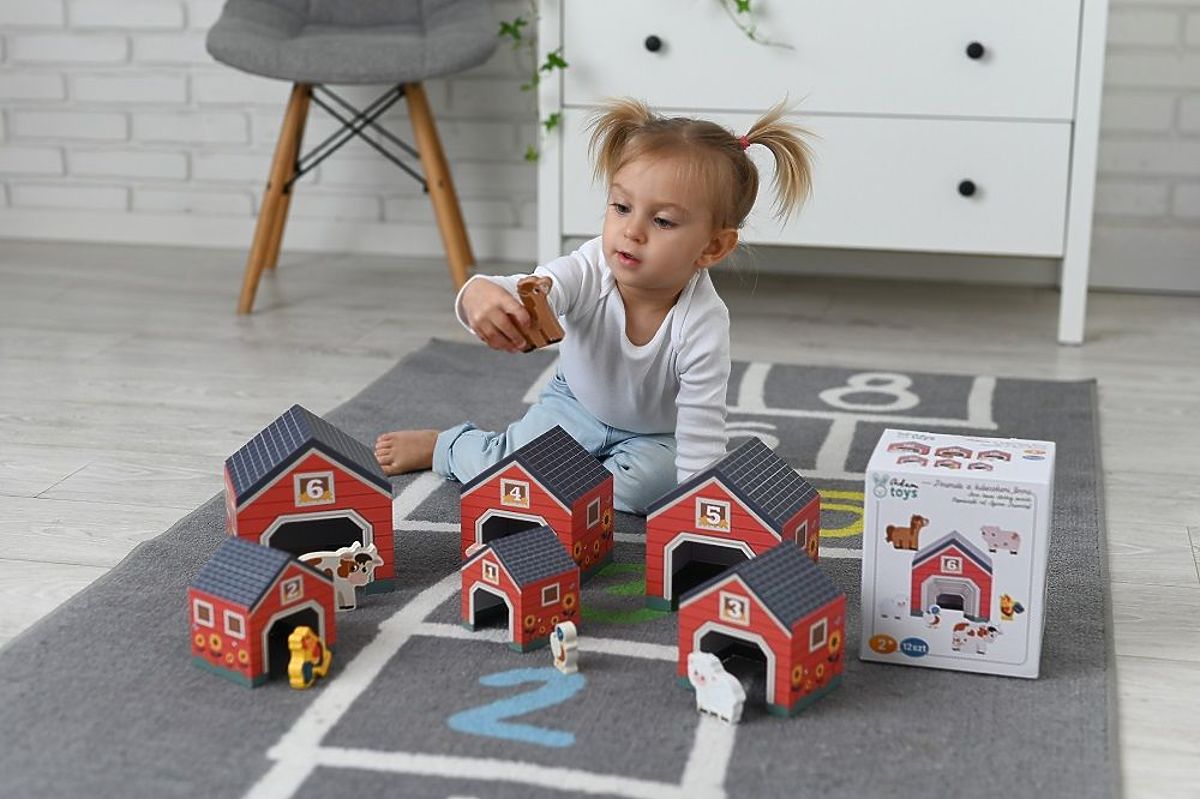 Die Pyramide mit Häuschen und Figuren ist ein weiteres Angebot aus der neuen Bauernhof-Serie von AdamToys. Das Becherstapelspiel ist ein hervorragendes Spielzeug, das die Bewegungskoordination und Geschicklichkeit fördert. Dieses niedliche Angebot ermöglicht es, auf viele Arten zu spielen, unter anderem: