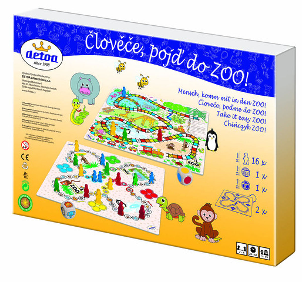 Das Brettspiel im Stil von "Mensch ärgere dich nicht!" besteht aus Holzfiguren, Würfeln und einem beidseitig bedruckten Spielplan aus hartem Karton. Die Würfel sind mit bunten Drucken oder mit Motiven von Zootieren bedruckt. Hauptmerkmale: Spaß für jede Altersgruppe, das Produkt erfüllt die EU-Sicherheitsanforderungen für Spielzeug, geeignet für Kinder ab 3 Jahren
