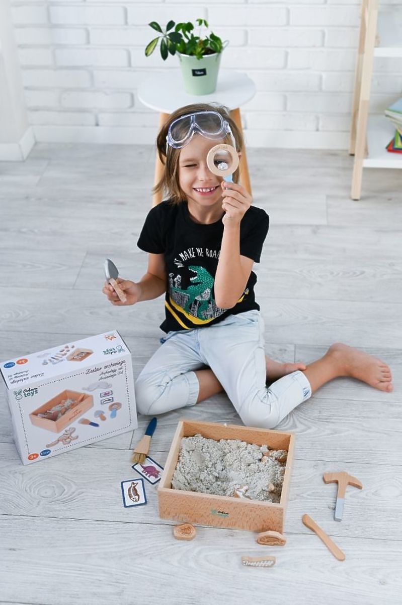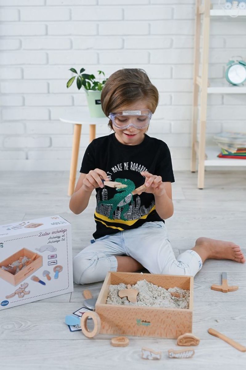 Ist Ihr Kind von der Welt der Dinosaurier fasziniert oder erkundet es gerne und entdeckt im Sand verborgene Schätze? Mit unserem Little Archaeologists Set können kleine Entdecker tief vergrabene Dinosaurierreste im lustigen und geschmeidigen kinetischen Sand entdecken. Dieses Lernspiel fördert die Entwicklung von Feinmotorik, Konzentration und Vorstellungskraft und vermittelt den Kindern auch Kenntnisse im Bereich der Archäologie.