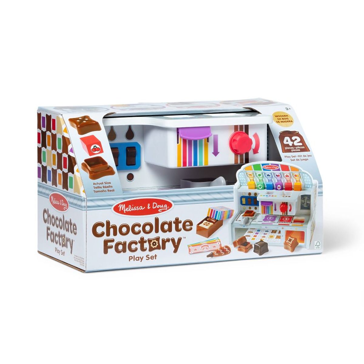 Ein Keks mit Himbeerfüllung und Karamellüberzug... oder vielleicht eine Nuss in weißer Schokolade. Es gibt viele Möglichkeiten, ebenso wie die Vielfalt der Geschmäcker in der fantastischen Neuheit von Melissa & Doug - der Schokoladenfabrik. Wir alle lieben Süßigkeiten - sowohl Kinder als auch wir Erwachsene. Auch wenn wir die Menge an Zucker in Form von Schokolade reduzieren sollten, müssen Sie sich mit unserer Schoko-Fabrik weder um Kalorien noch um Unordnung sorgen. Das Set enthält alles, was für großartigen Spaß beim Rollenspiel benötigt wird.
