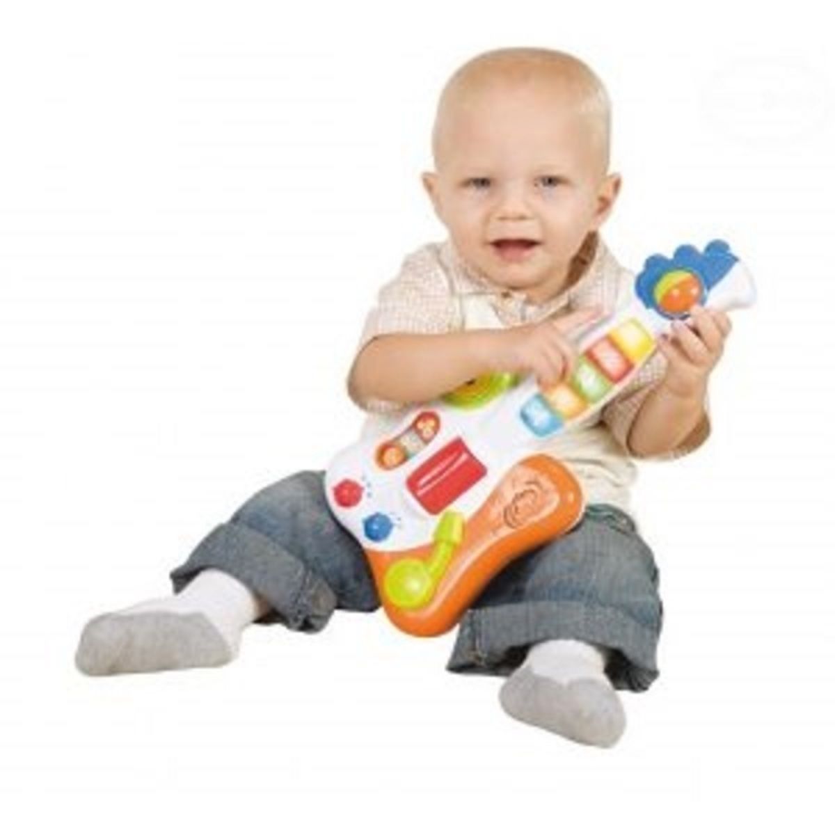 Die Kinder-Spielgitarre ist einer der beliebtesten Spielzeuge. So wird der erste Kontakt einem Musikinstrument sehr lustig und angenehm verlaufen.
