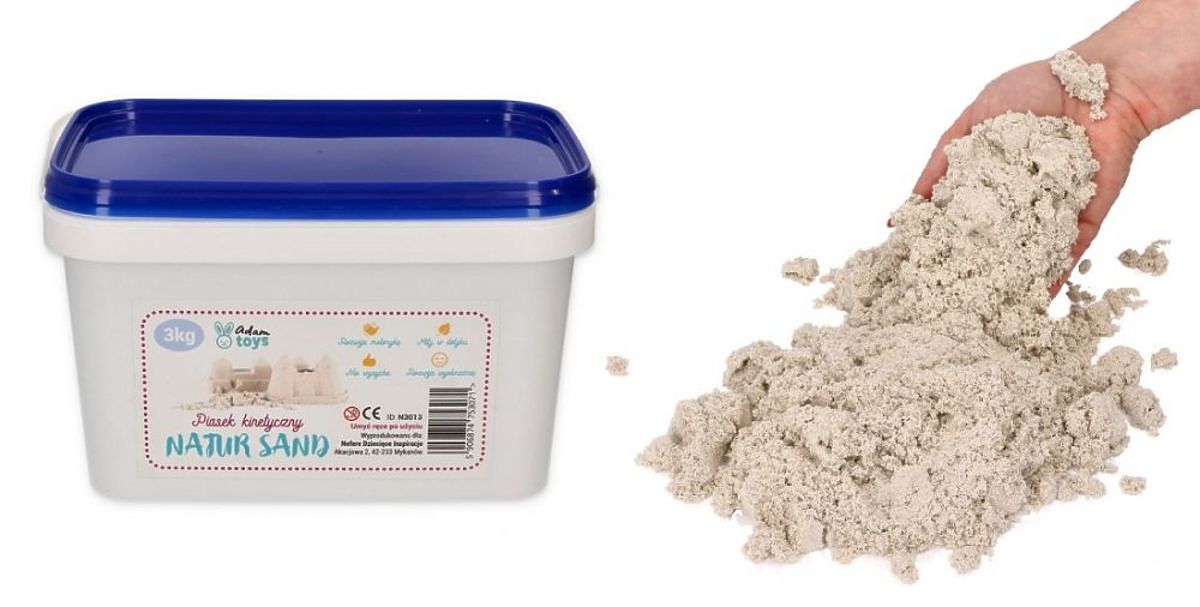 Kinetischer Sand NaturSand garantiert großen Spaß und Handtraining in einem. Es ist auch eine neue taktile Erfahrung für das Kind. Mit Sand können Sie zu Hause Puppen und Sandburgen bauen.