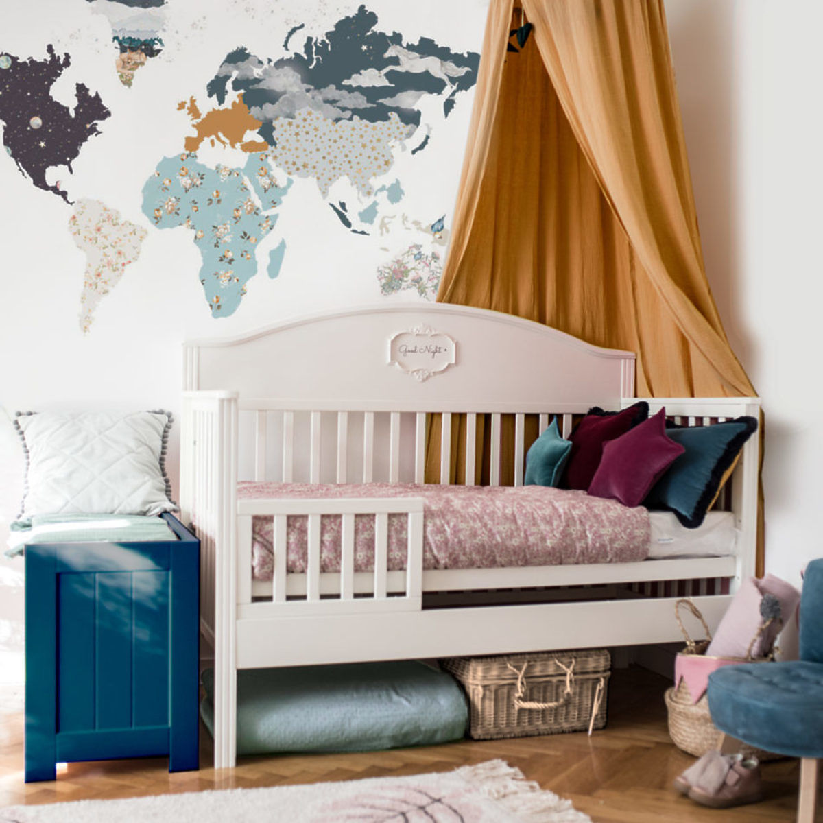 Schöne große Karte, die nicht nur als Dekoration, sondern auch als Lehrmittel dient. Auch diese Dekoration wurde mehrfach ausgezeichnet, unter anderem mit den Consumer Awards in den Kind + Jugend-Märkten.