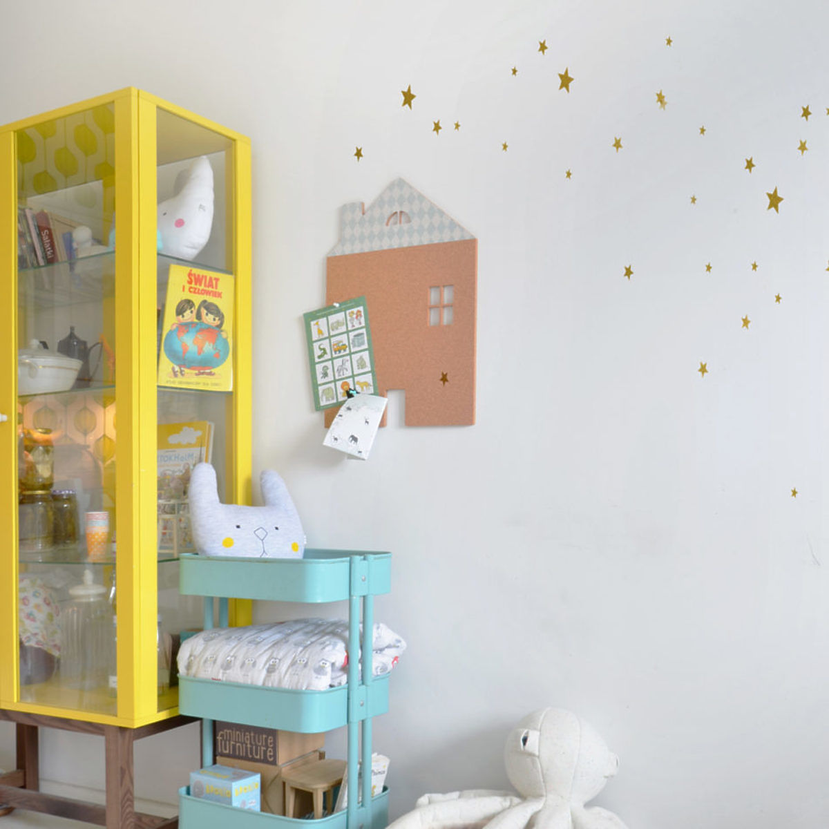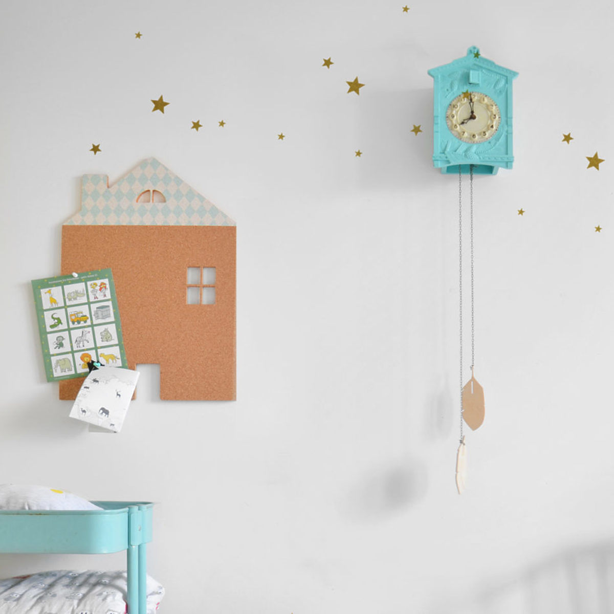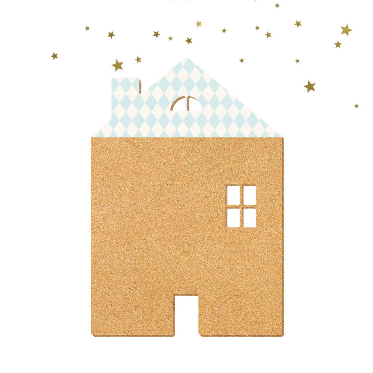 Stilvoll, praktisch schwarzes Brett in der Form eines Hauses mit einem blauen Dach ist für alle Schüler ideal. S schöne goldenen Sterne dienen auch als Dekoration.