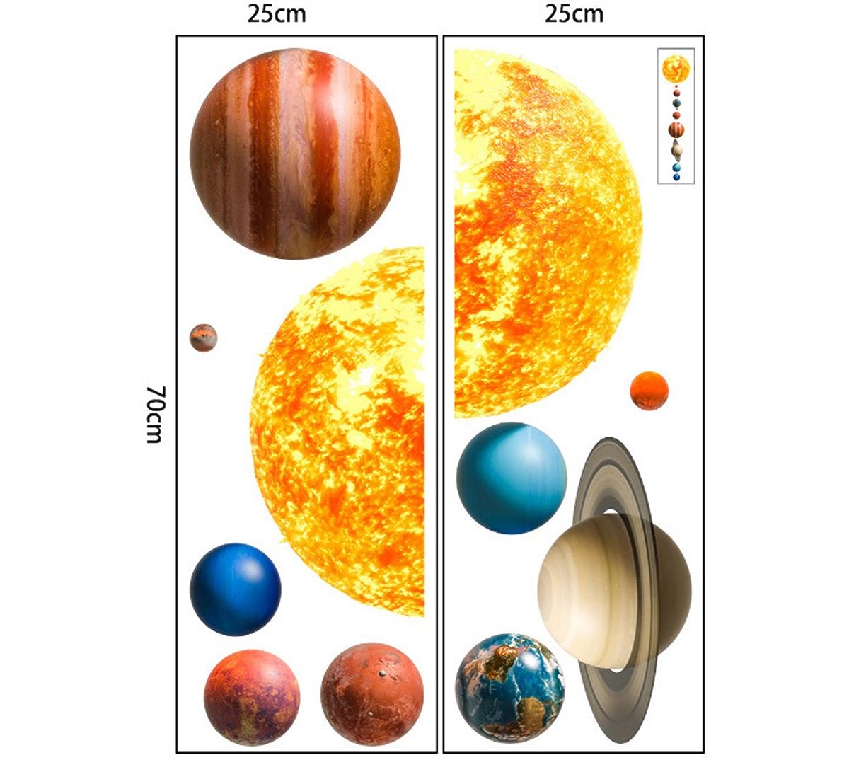 Aufkleber sind eine ideale Lösung für eine schnelle Veränderung und Dekoration eines Kinderzimmers. Das ursprüngliche Thema der Planeten wird ein Abenteuer für jeden Entdecker der Tiefen des Weltraums sein. Diese Dekoration regt die Fantasie der Kinder an und fügt dem Raum ein interessantes Element hinzu.