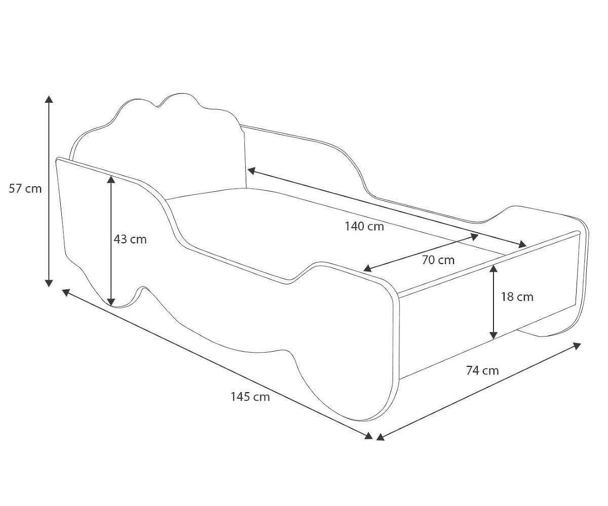 Das Bett ist aus einer strapazierfähigen Möbelplatte mit erhöhter Widerstandsfähigkeit gefertigt, was seine Stabilität und Langlebigkeit garantiert. Der bequeme FLEX-Federlattenrost sorgt für einen komfortablen Schlaf und die Matratze mit abnehmbarem Bezug erleichtert die Reinigung. Eine optionale geräumige Schublade ermöglicht die Aufbewahrung von Bettwäsche oder Kinderschätzen und hilft, Ordnung im Zimmer zu halten. Alle Kanten sind abgerundet und mit einem PVC-Rand geschützt, was das Verletzungsrisiko eliminiert. Ein einfaches Montagesystem sorgt dafür, dass der Aufbau des Bettes schnell und intuitiv ist. Es ist die ideale Lösung für Eltern, die Sicherheit, Komfort und Ästhetik in Kinderzimmern schätzen.