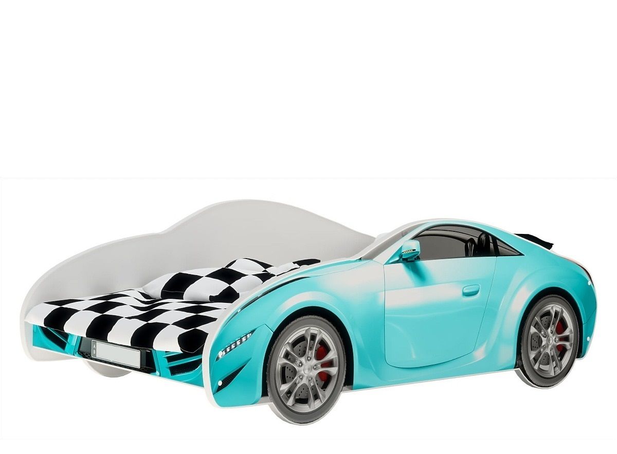 Mit diesem geilen Kinderbett in Autoform erfüllen Sie den Traum jedes kleinen Rennfahrers. Das Bett besteht aus hochwertiger Spanplatte und ist mit einem schönen blauen Print in ökologischen Farben verziert.