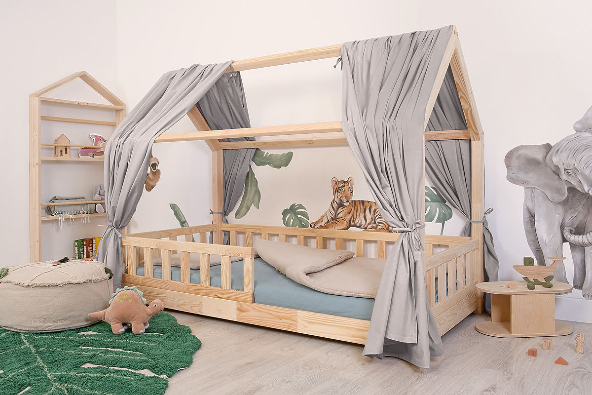 Ein wunderschöner Stoffvorhang in sanften Grautönen, der wie aus den beliebten Märchen aus Tausendundeiner Nacht entsprungen ist. Es handelt sich um eine schöne Dekoration über dem Kinderhausbett Tea, die es zu einem gemütlichen und sicheren Ort zum Einschlafen macht, aber auch zu einer Spielecke oder einem Kinderversteck. Der Baldachin im zeitlosen Boho-Stil wird in jedem Kinderzimmer perfekt zur Geltung kommen.