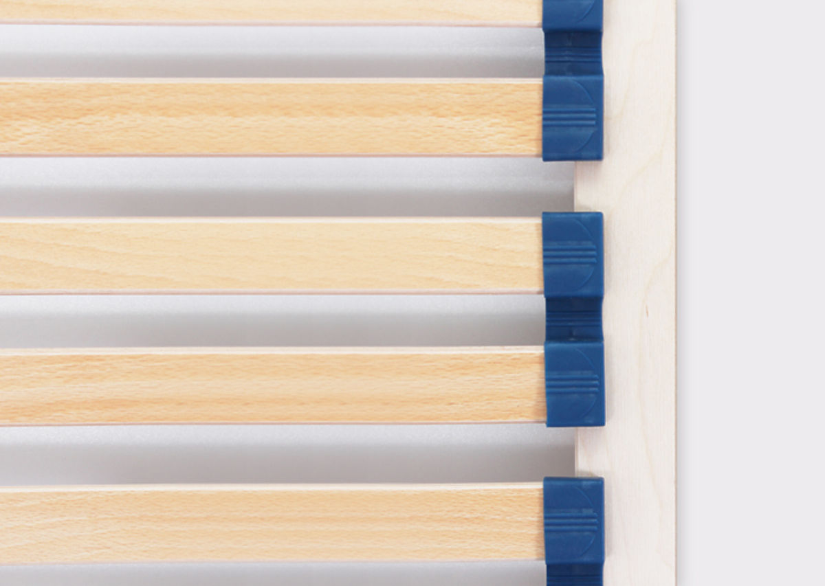 Die Konstruktion des Rosts besteht aus schichtverleimtem Buchenholz. Der Rost ist für alle Arten von Matratzen geeignet und dank der hohen Flexibilität der Lamellen auch für Matratzen mit einer Höhe von weniger als 7 cm geeignet.