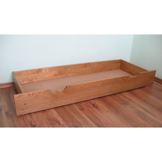 Die Schublade gleitet unter das Bett und besteht aus massiver Kiefer, die mit zwei Lackschichten bemalt ist und den EU-Standards entspricht. Es ist harmlos und geruchlos.