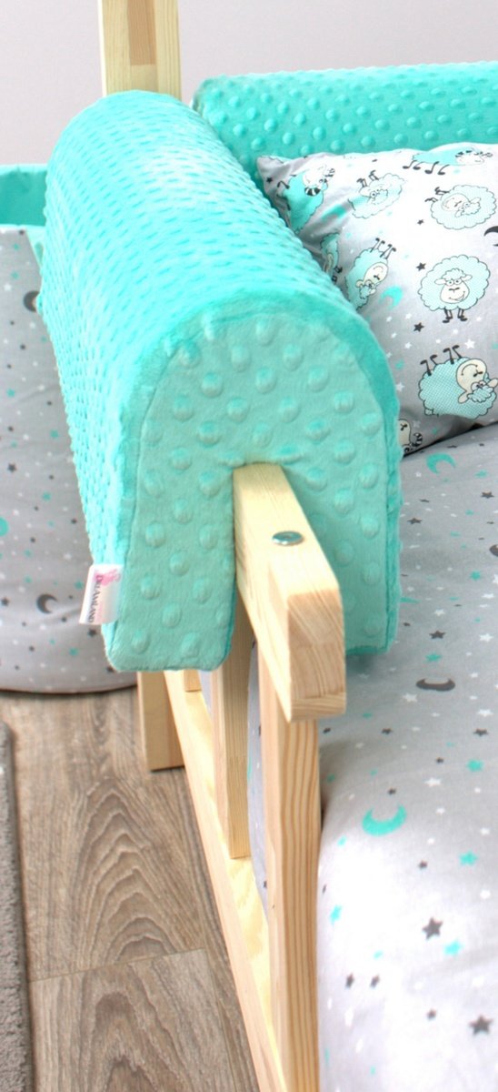 Der Seitenschutz Ourbaby in der Farbe heller Minze für Kinderbett bietet Sicherheit und ist zudem ein schöner Blickfang. Der Seitenschutz ist in zwei Größen/Längen erhältlich: 70 cm und 50 cm, so kann man es bei jeder Bettgröße wunderbar nutzen.