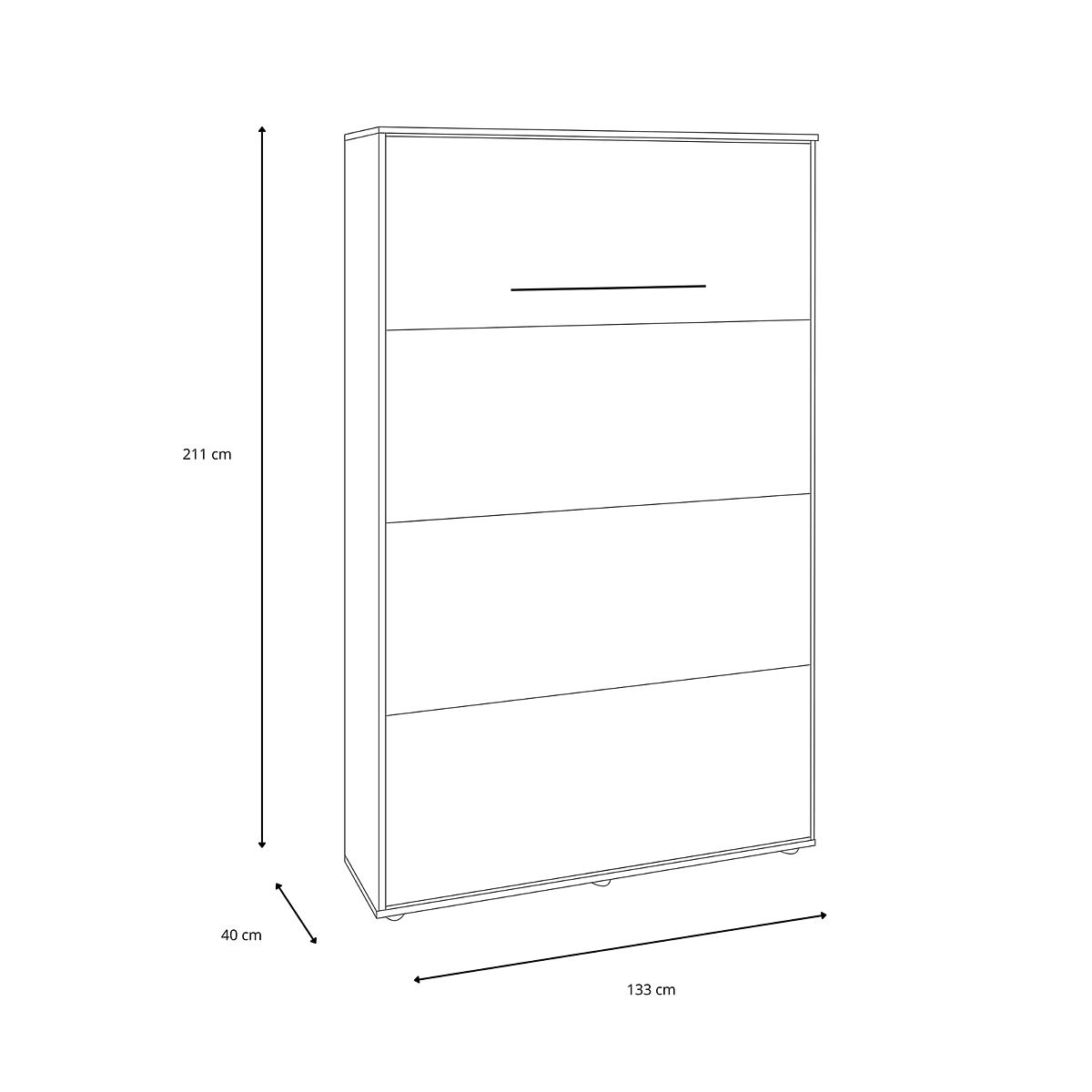 Das Klappbett VERTO 120x200 ist ein elegantes, vertikales Bett, das in einem Schrank versteckt ist und es ermöglicht, in wenigen Augenblicken eine gemütliche Schlafzone auch in kleinen Räumen zu schaffen. Ideal für diejenigen, die Komfort mit maximaler Raumnutzung kombinieren möchten.