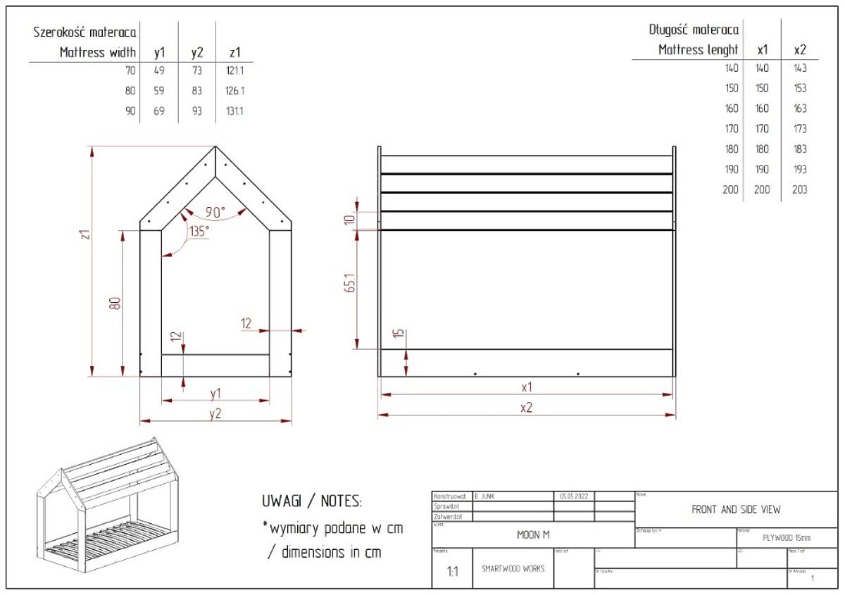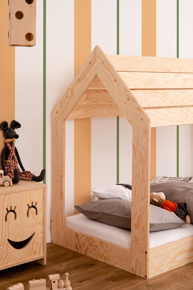 Montessori Hausbett Chris ist eine geeignete Wahl für Jungen- und Mädchenzimmer. Dank seines zeitlosen und originellen Designs kann es mit verschiedenfarbigen Accessoires kombiniert werden. Nicht nur das - jeder kleine Besucher des Zimmers wird begeistert sein von dem Häuschen, in dem man bequem lesen, entspannen oder spielen kann. Der obere Teil des Häuschens imitiert das Dach und bietet Platz für Lampen oder andere kreative Dekorationen, wodurch nicht nur der Schlafbereich, sondern auch das gesamte Zimmer gemütlicher wird. Dank seiner Konstruktion fördert das Bett die Selbstständigkeit des Kindes ohne Angst vor dem Herunterfallen.