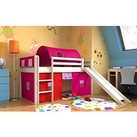 Banaby.de » Kinderbetten / Hochbetten / Erhöhte Bett Gabi mit Rutsche, tunnel a taschendiebe - white