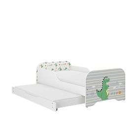 Kinderbett Miki mit Sicherheitsbarriere und niedlichem Dinosaurierdruck. .. mehr