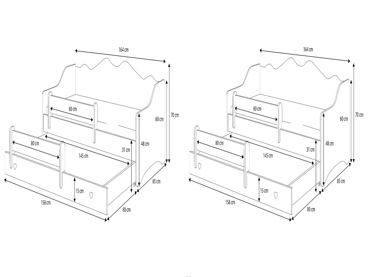 Das Kinderbett Kobi Emma ist die ideale Lösung für Eltern, die nach praktischen und ästhetischen Möbeln für das Kinderzimmer suchen. Dieses Modell verfügt über zwei Schlafplätze – die obere mit den Maßen 160x80 cm und die untere 145x80 cm – was es zu einer großartigen Wahl sowohl für Geschwister als auch für Kinder macht, die gerne Freunde zum Übernachten einladen. Feine Details und ein durchdachtes Design sorgen dafür, dass das Bett harmonisch in jedes Interieur passt und zu dessen Schmuckstück wird.