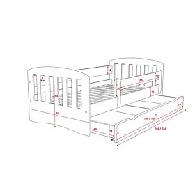Die Kanten des Bettes sind abgerundet und sicher. Der Lattenrost des Bettes ist aus Kiefernholz gefertigt. Die Bettleisten gewährleisten eine geeignete und ausreichende Unterstützung der Matratze.
