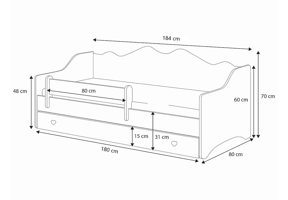Die Funktionalität des Modells EMMA wird durch eine Reihe praktischer Lösungen hervorgehoben, die den Alltag erleichtern. Das Bett ist mit einer geräumigen Schublade auf Rollen ausgestattet, die ideal zur Aufbewahrung von Bettwäsche, Spielzeug, Spielen oder anderen Gegenständen ist und hilft, Ordnung im Kinderzimmer zu halten. Ein weiterer Vorteil ist das bewegliche Schutzgitter, das an jeder Seite des Bettes montiert werden kann, was seine Vielseitigkeit und Sicherheit erhöht. Die Konstruktion des Bettes trägt eine Belastung von bis zu 110 kg, sodass es viele Jahre dienen kann. Der Einsatz von Federleisten im FLEX-System sorgt für optimale Körperunterstützung, was die Schlafqualität beeinflusst. Zudem ermöglicht das hohe Kopfteil, dass das Bett tagsüber als bequeme Couch dient – ideal zum Lesen, Spielen oder Ausruhen. Diese multifunktionale Lösung bewährt sich sowohl in kleineren als auch in größeren Räumen und erfüllt vollständig die Bedürfnisse von Kindern und ihren Eltern.