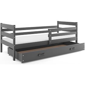 Einfaches Bett Erik fürs Kinderzimmer, in grauer Farbe mit Schublade und Rausfallschutz. Eigenschaften: - Universaler Rausfallschutz, Sie selbst bestimmen .. mehr
