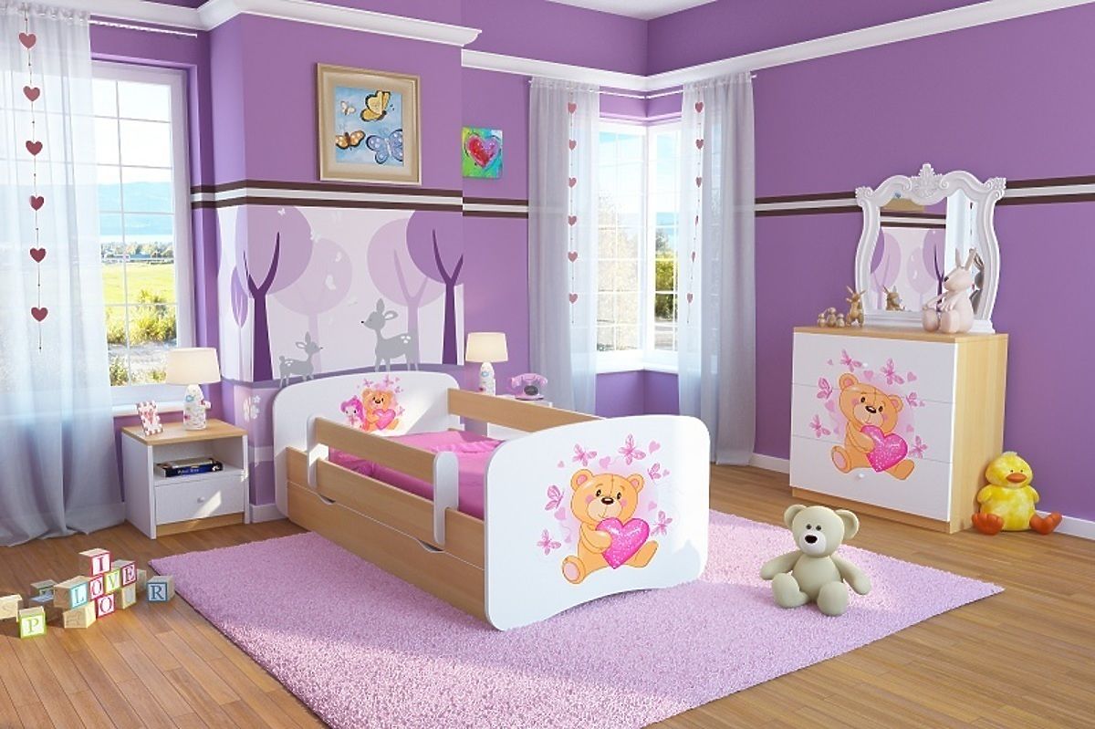 Das schöne Kinderbett mit Bärchen-Motiv und buchenfarbenen Seitenteilen belebt jedes Kinderzimmer. Das Kinderbett Ourbaby hat ein schönes zeitloses Design und ist für Mädchen und Jungs geeignet! Das Kinderbett ist sehr komfortabel, einfach zu montieren und sehr funktionell.