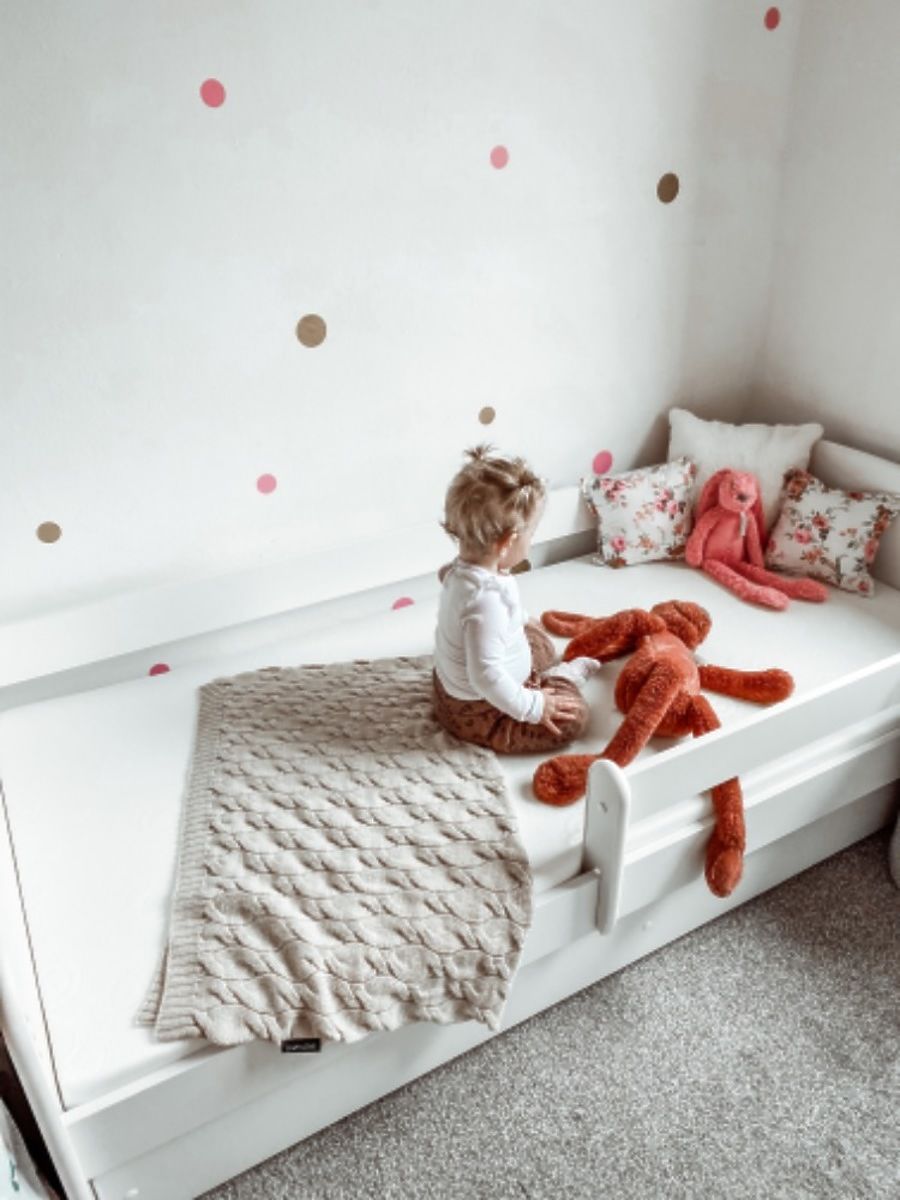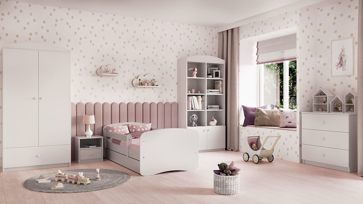 Das Kinderbett bietet maximale Sicherheit dank abgerundeter Kanten, an denen sich die Kinder nicht verletzen können. Vor einem unangenehmen Sturz aus dem Bett schützt das Kind der abnehmbare Rausfallschutz mit einer Länge von 100 cm.