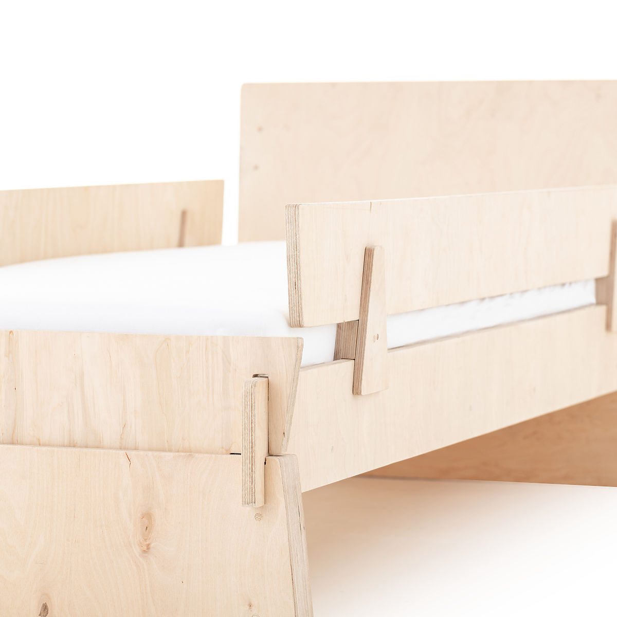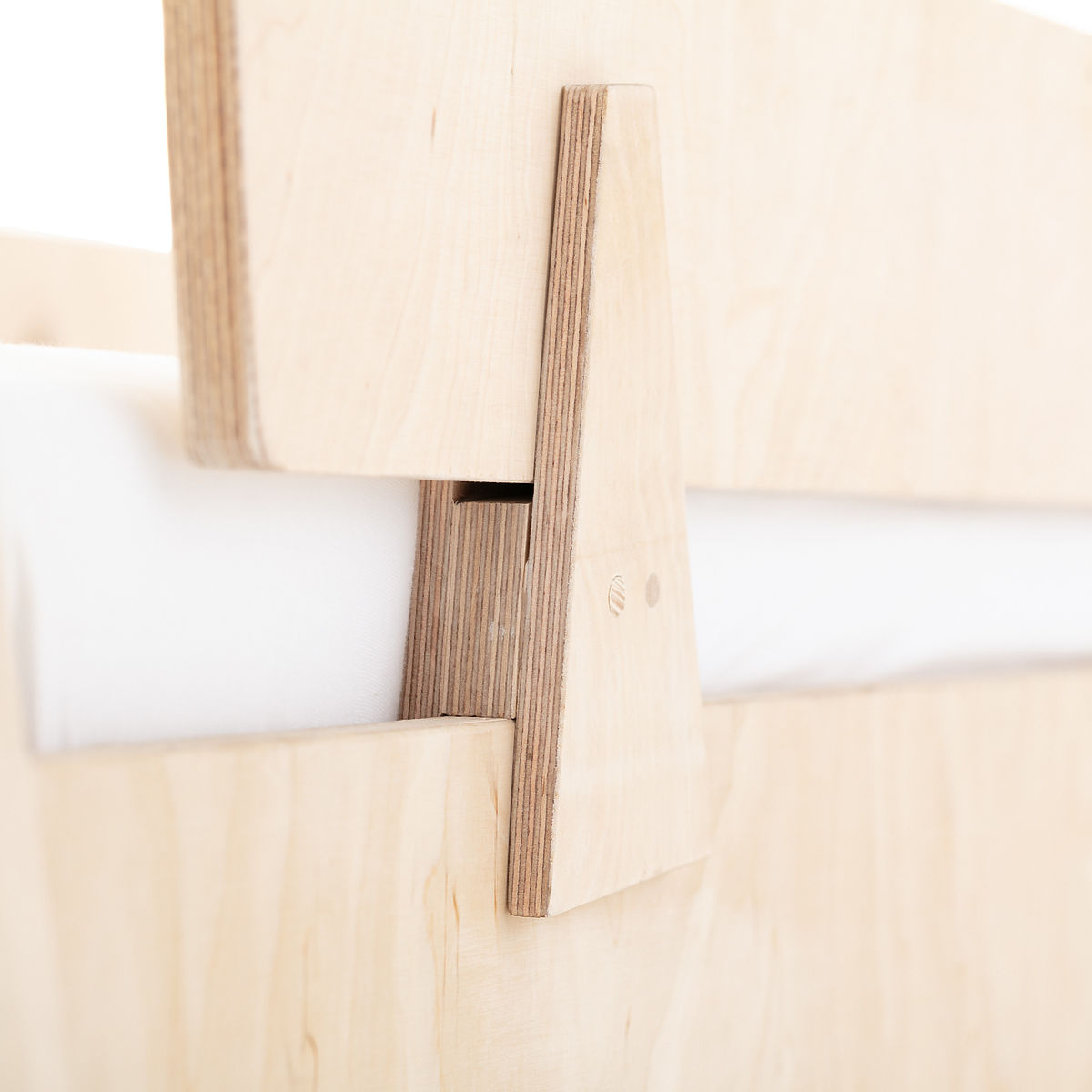 Originalkonstruktion: Das Bett wurde so konzipiert, dass Sie beim Zusammenbau auf Werkzeuge verzichten können. Es hält alles ohne die Verwendung einer einzigen Schraube zusammen und bleibt gleichzeitig stabil und sicher. Die einzelnen Teile des Bettes passen reibungslos zusammen!