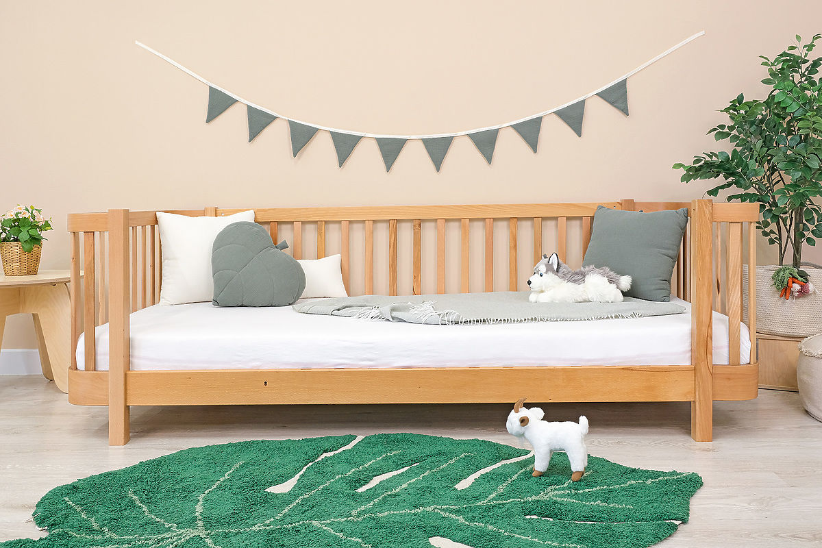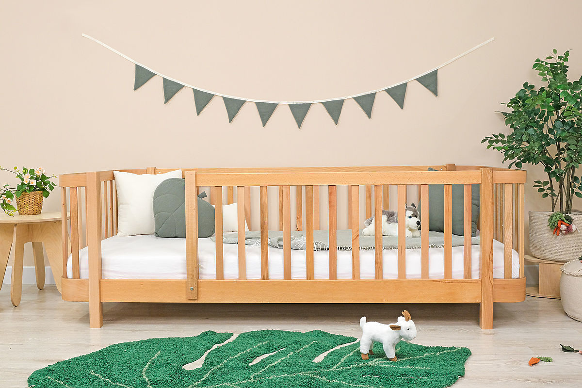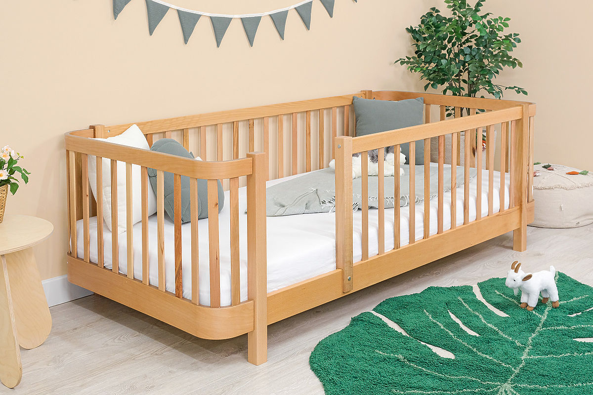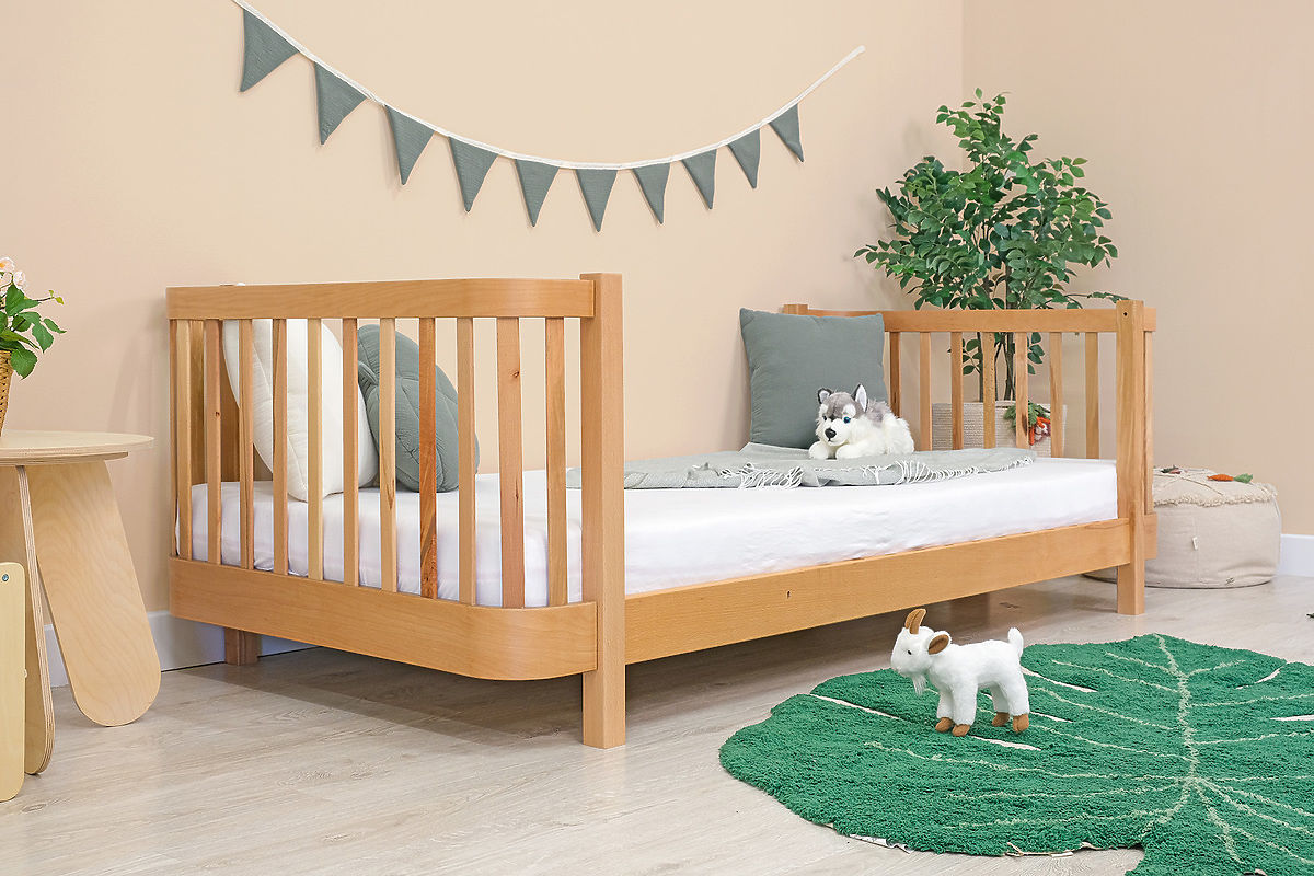Das Montessori-Kinderbett Kate aus Buche wird Sie durch sein einzigartiges Design und seine hochwertige Verarbeitung beeindrucken. Das Bett im Naturdekor ist aus hochwertigem Buchenholz gefertigt und dank der abgerundeten, in einer speziellen Technik gebogenen Ecken ist es für Ihr Kleines ein sicherer und bequemer Ort zum Entspannen und Schlafen. Der Vorteil besteht in der Möglichkeit, die Fesseln zu entfernen, wodurch die Nutzungsdauer des Bettes auch bis ins höhere Alter des Kindes verlängert werden kann.