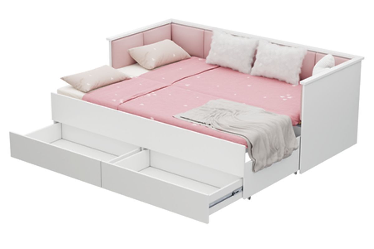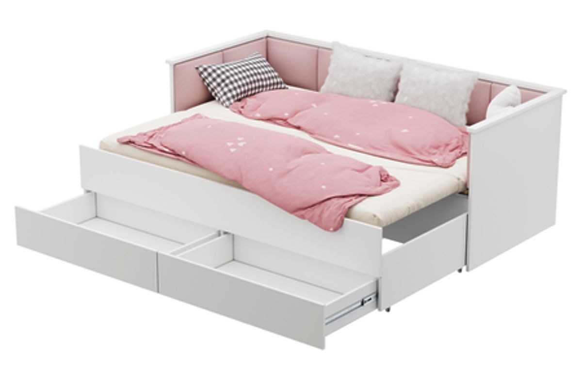 Banaby.de » Kinderbetten / Kinderbetten mit Zusatzbett / Ausziehbares Bett HELIOS mit gepolsterten Paneelen rosa 200x80/200x160