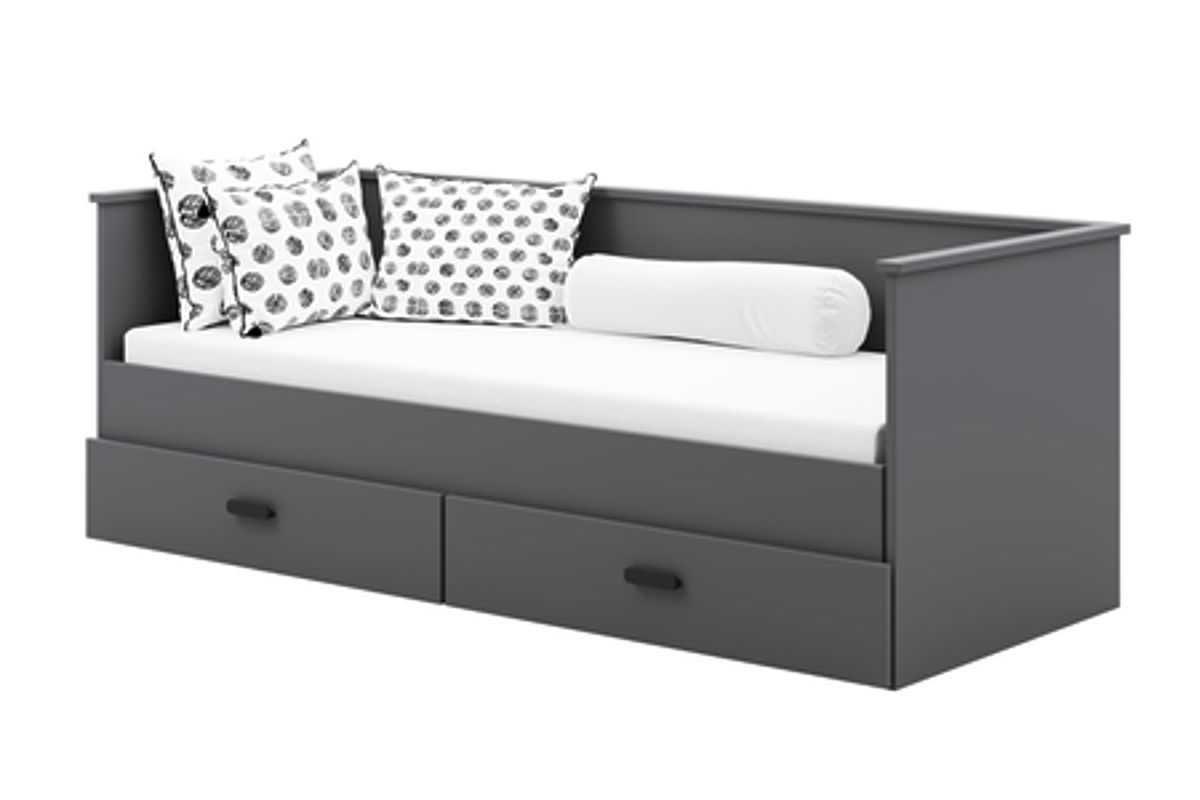 Das Bett HELIOS ist ein modernes, ausziehbares Jugendbett, das elegantes Aussehen mit praktischen Funktionen kombiniert. Dank der Möglichkeit, es schnell durch Herausziehen der unteren Basis in ein Doppelbett zu verwandeln, ist dieses Möbelstück sowohl für kleine als auch geräumige Zimmer ideal. Sein universelles Design in Grau passt perfekt zu jedem Einrichtungsstil und verleiht ihm einen modernen Charakter und eine subtile Eleganz.