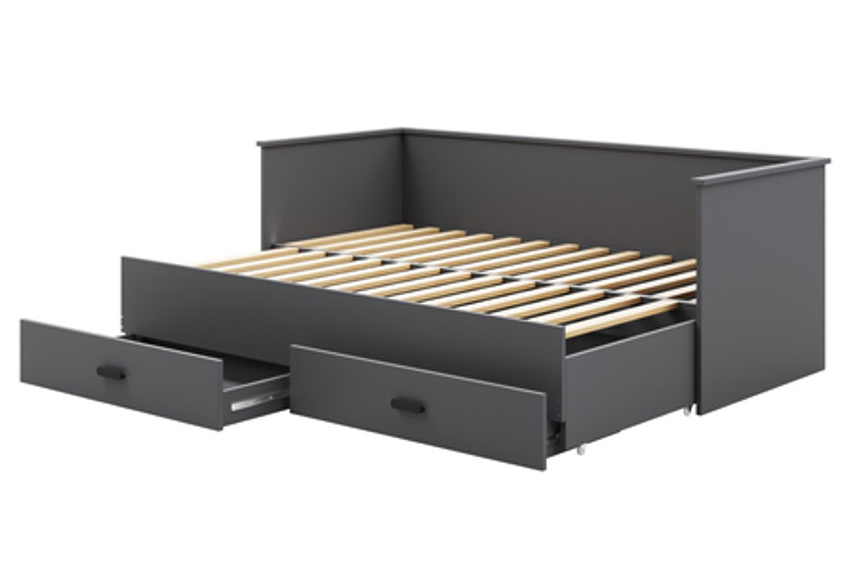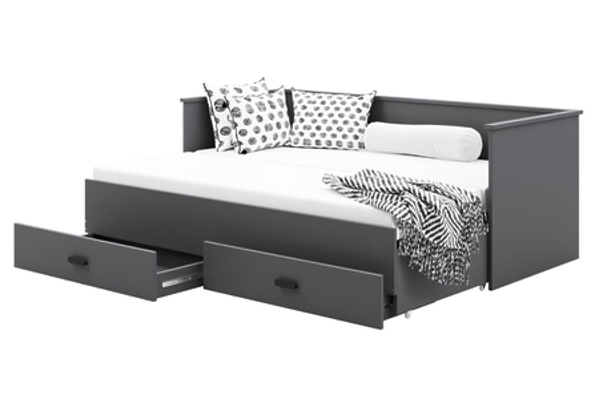 Banaby.de » Kinderbetten / Kinderbetten mit Zusatzbett / Ausziehbares Bett HELIOS mit zwei Schubladen grau ohne Matratzen 200x80/200x160