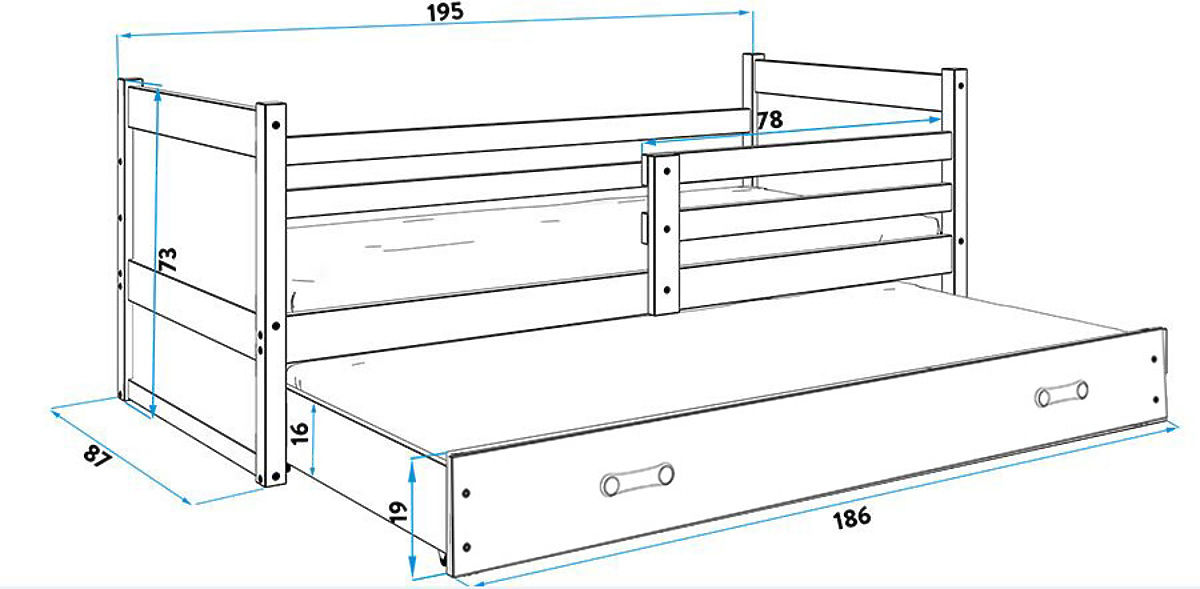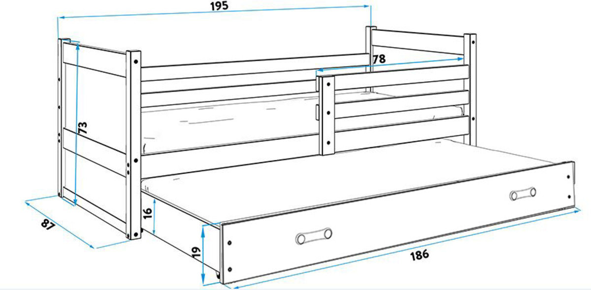 Banaby.de » Kinderbetten / Kinderbetten mit Zusatzbett / Kinderbett mit Zusatzbett ROCKY - grau/weiß