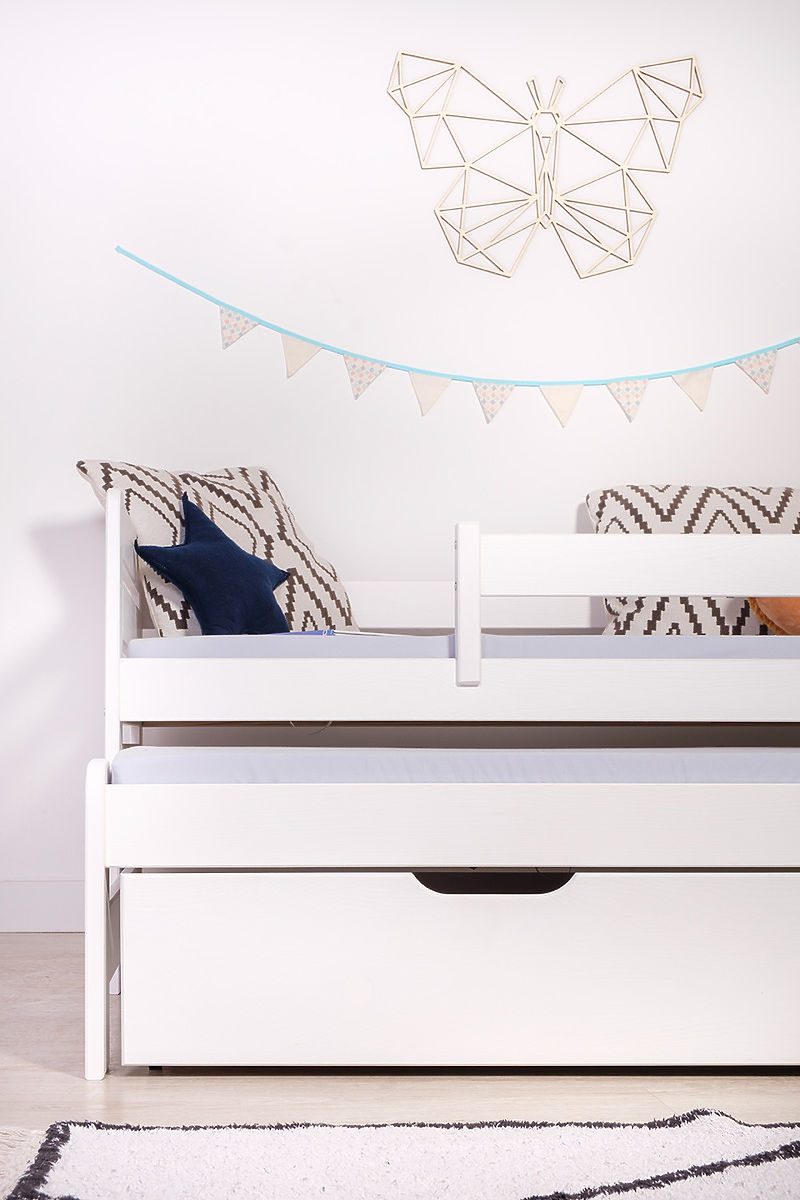 Banaby.de   »   Kinderbetten   /   Kinderbetten mit Zusatzbett   /   Kinderbett mit Ausziehbett und Schutzgitter Praktik - Weiß