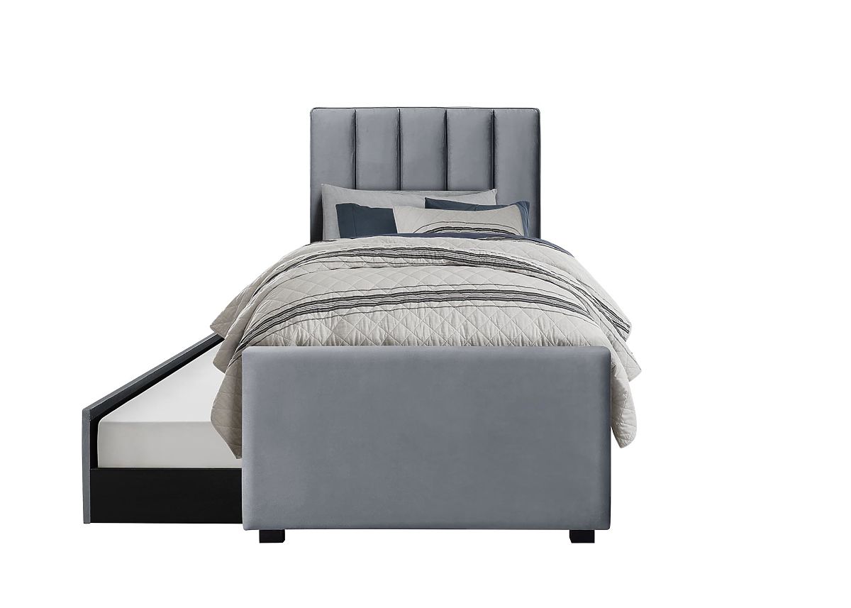 Doppelbett mit ausziehbarer unterer Matratze in Grau. .. mehr