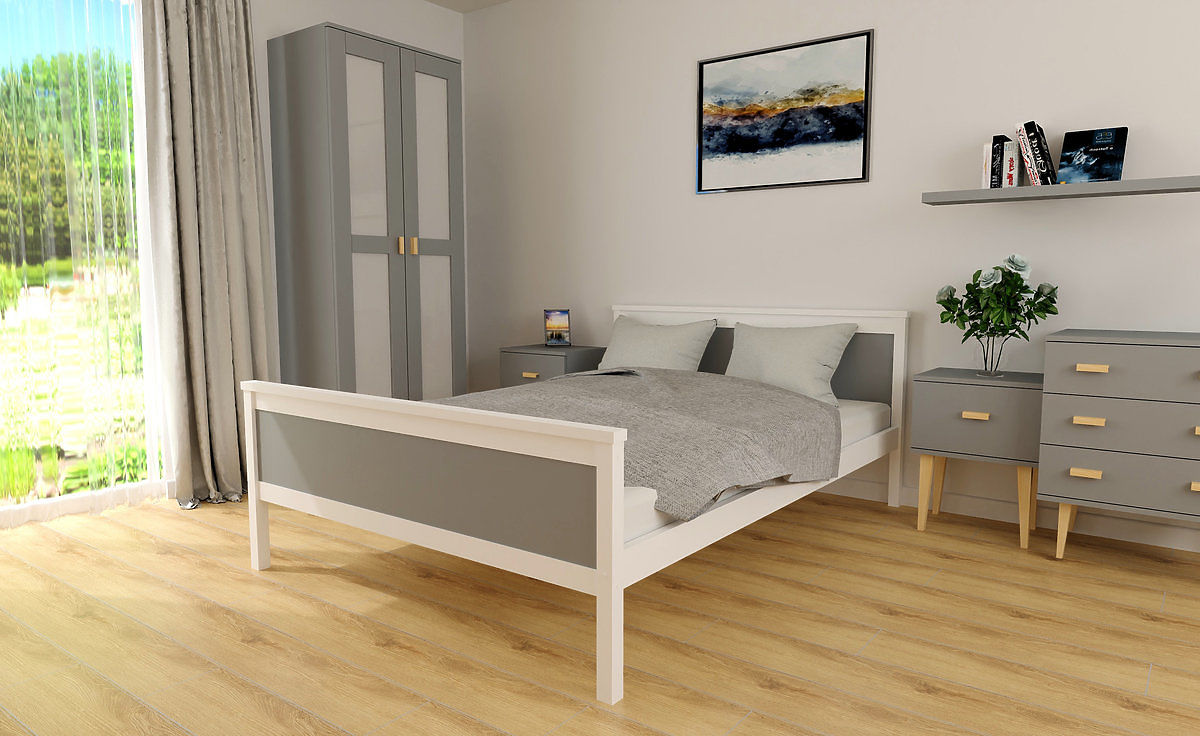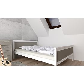 Dank seiner attraktiven Optik und hochwertigen Verarbeitung wird das Holzbett Ikar mit den Maßen 200 x 90 cm selbst den anspruchsvollsten Kunden ins Auge fallen. Das Einzelbett in grau-weißer Ausführung zeichnet sich durch sein modernes Design und Funktionalität aus und eignet sich für alle Arten von Innenräumen.