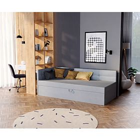 Das moderne gepolsterte Bett BILLY mit den Maßen 200 x 90 cm ist eine hervorragende Wahl für diejenigen, die stilvolle Möbel für ihr Schlafzimmer suchen. Neben einer hochwertigen Schaumstoffmatratze mit praktischem Griff zum einfachen Anheben bietet das Bett auch Stauraum unter dem Bett. Diese Funktion ermöglicht die Aufbewahrung verschiedener Schlafzimmeraccessoires und trägt dazu bei, das Schlafzimmer ordentlich zu halten.