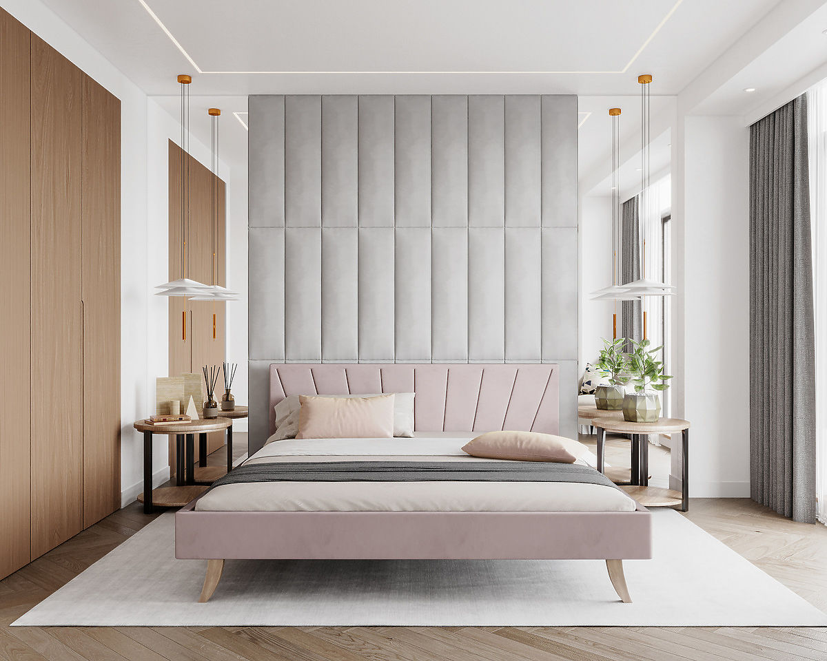 Der Bezugsstoff TRINITY aus Velours ist ideal für Polsterbetten im Schlafzimmer. Es ist weich, abrieb- und pillingbeständig und hat eine weiche Textur. Dieser Stoff fühlt sich angenehm an und ist beständig gegen Sonnenlicht.