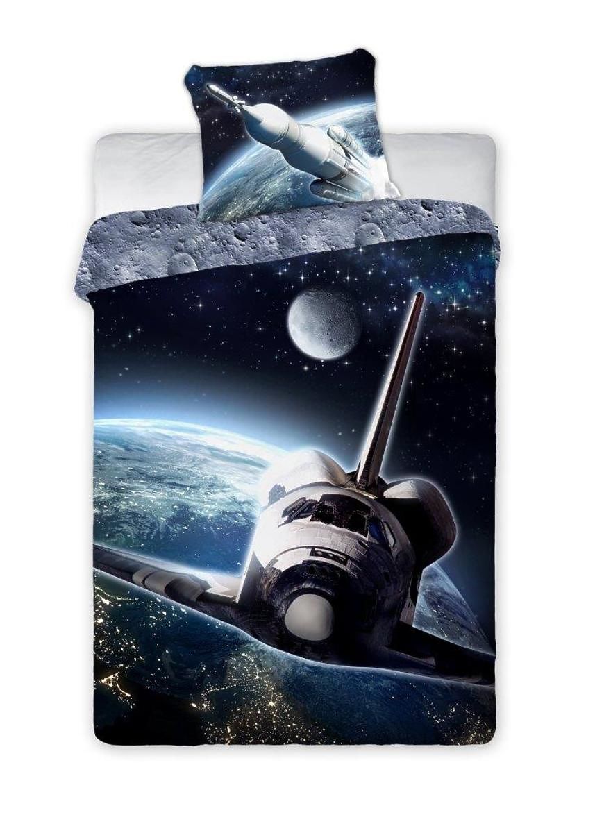 Das Bettwäscheset beinhaltet einen Bettbezug 140 x 200 cm und einen Kissenbezug 70 x 90 cm . Die Beschichtungen sind doppelseitig . Auf der Vorderseite ist die Raumfähre Discovery zu sehen, darunter der Nachtplanet Erde und auf dem Kissen eine LSL-Rakete mit Modul. Die andere Seite zeigt ein anderes Motiv der Mondoberfläche in Grau. Dank des praktischen Reißverschlusses ist das Wechseln der Bettwäsche einfach und schnell.