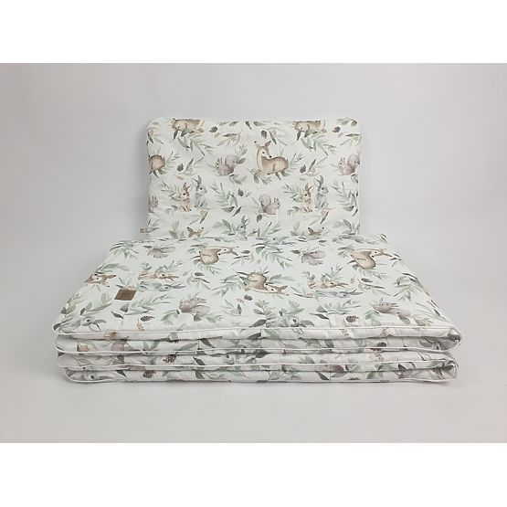 Baumwollbettwäsche mit Wattierung ist eine praktische Alternative zur klassischen Babybettwäsche. Dieses weiche Set wird Ihren Kleinen einen angenehmen Schlaf bescheren. Die Bettwäsche ist mit einem schönen Motiv von Waldtieren verziert. Dank der universellen Farben wird es sowohl für Mädchen als auch für Jungen großartig sein.