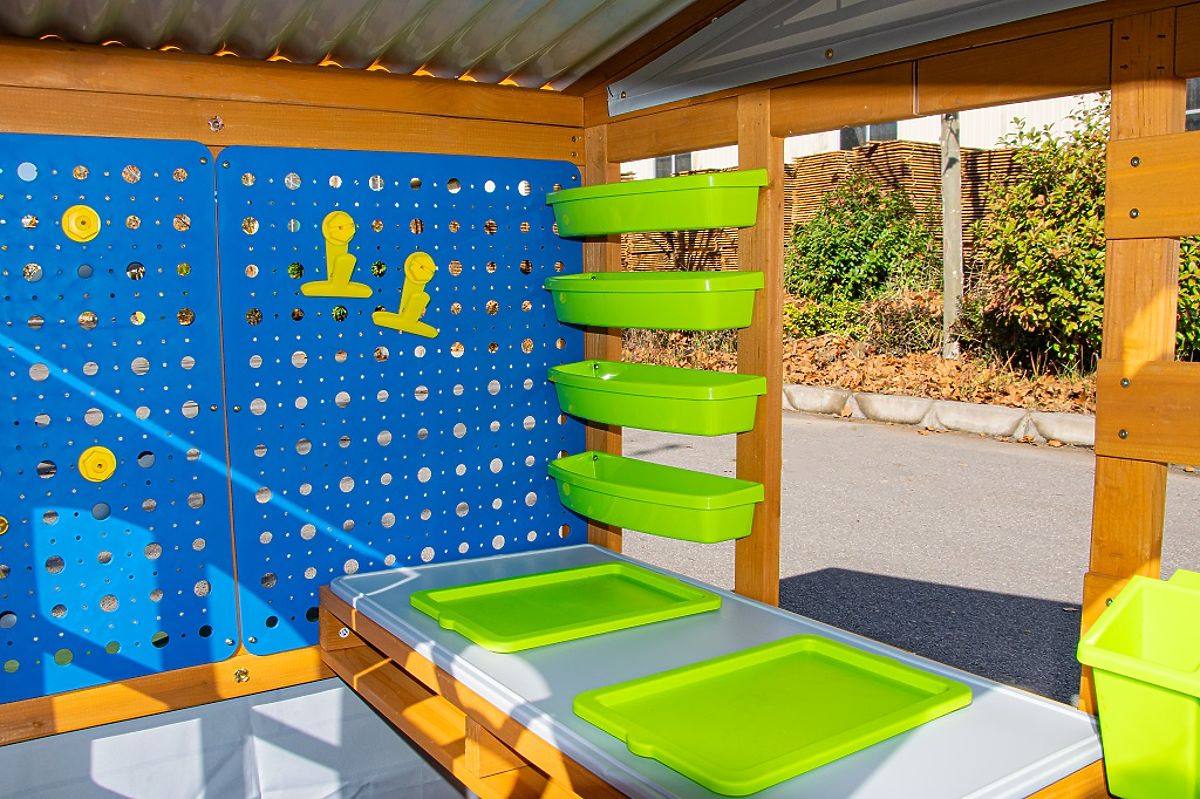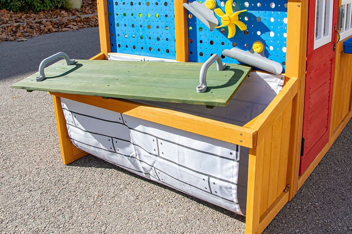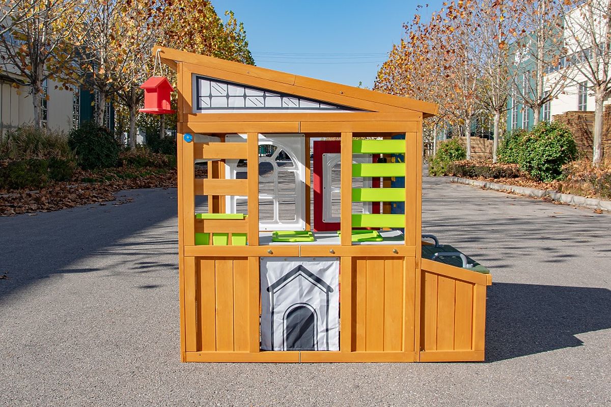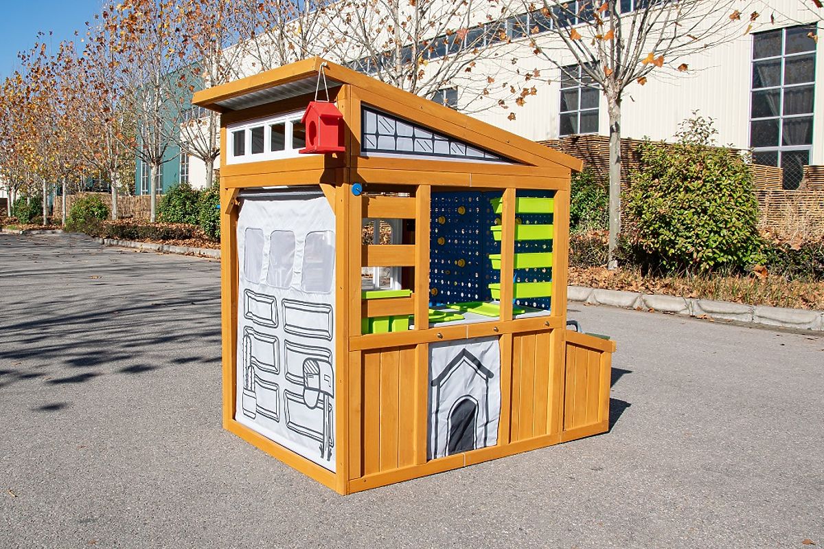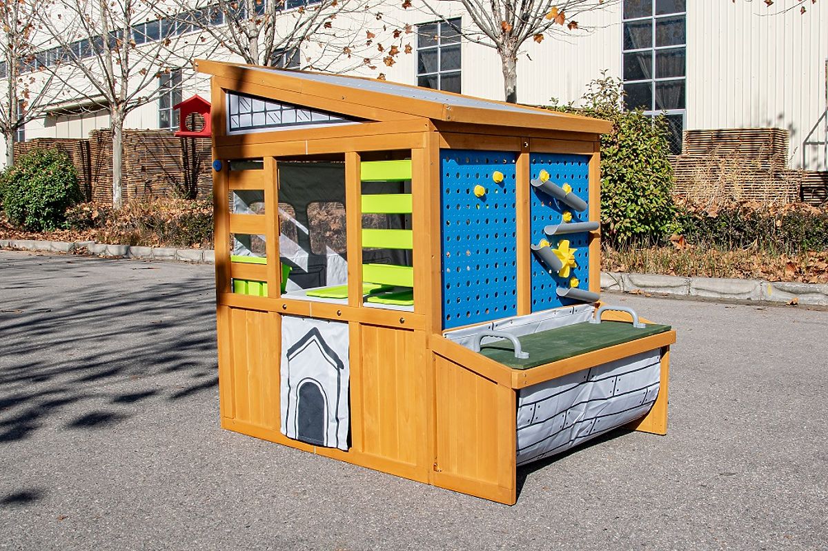 Geben Sie Ihrem Kind Raum zum Entdecken, Konstruieren und Gestalten. Dieses innovative Holzspielhaus fördert Kreativität, Selbstständigkeit und Fantasie im täglichen Spiel. Mit seinem schrägen Dach erinnert es an einen kleinen Geräteschuppen und bietet eine Reihe durchdachter Spiel- und praktischer Elemente. Das Haus ist mit einem rollbaren "Garagentor" mit Griff, einer Steckwand und einem erhöhten Innentisch mit Arbeitsplatte für Handarbeiten ausgestattet. Es fehlen auch nicht Ablagefächer in verschiedenen Größen, die helfen, Ordnung zu halten. Der Außenbereich kann auch als Sitzbank oder Arbeitsfläche genutzt werden. Die Außenansicht des Hauses wird durch ein Vogelhäuschen und einen Fensterkasten ergänzt, die das Spiel in Kontakt mit der Umgebung fördern. Das Haus bietet auch traditionelle Türen und einen kleinen Eingang für Haustiere, wodurch die Spielmöglichkeiten und die Einbeziehung der ganzen Familie erweitert werden. Inhalt des Hauses: traditionelle Türen und ein kleiner Eingang für Haustiere, Garagentor mit Griff zum Öffnen und Schließen, Tisch mit Stauraum im unteren Bereich, bewegliche Holzbank, Blumenkästen, Becher, Vogelhäuschen, Stauraum, Zubehör für die Steckwand. Hauptmerkmale: fördert die Entwicklung sozialer Fähigkeiten, modernes Design, hochwertige und detaillierte Verarbeitung, aus Holz gefertigt, geeignet für das Spiel mehrerer Kinder. Informationen für B2B-Partner: Dropshipping innerhalb der Tschechischen Republik!