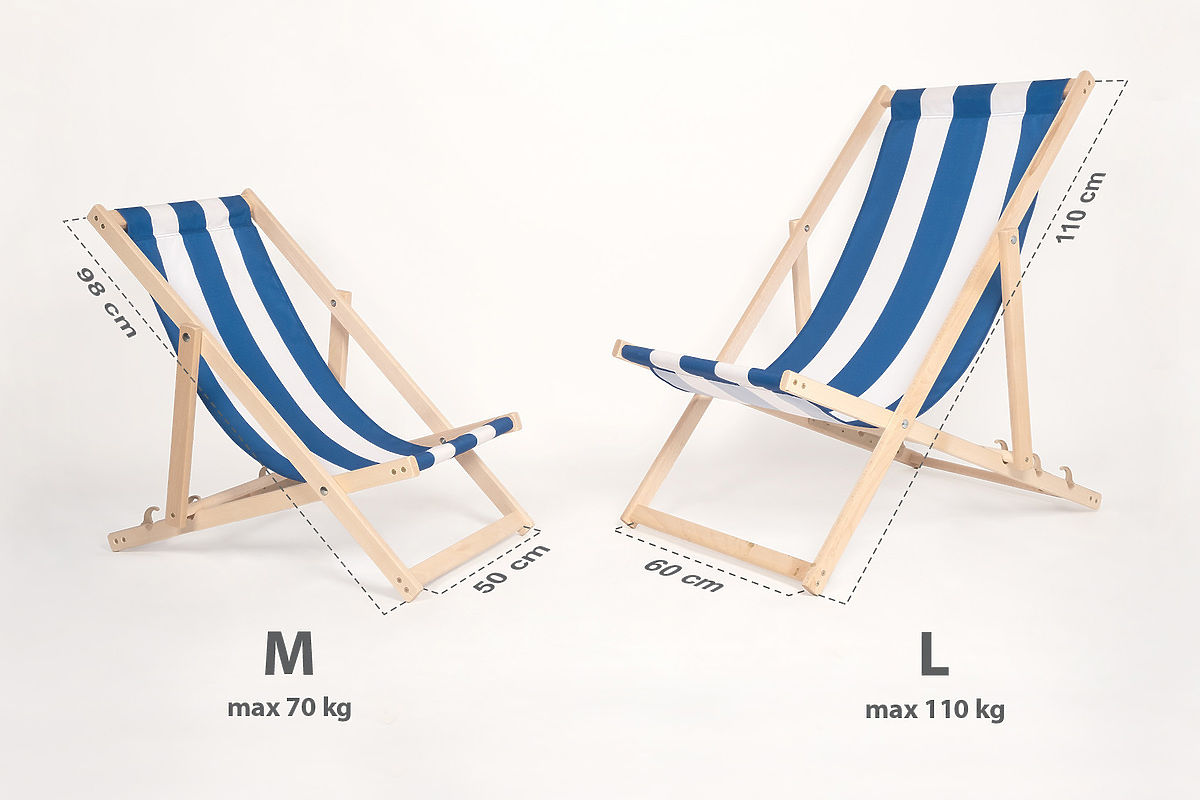Die Parameter der Liege variieren je nach gewählter Größe. Die ideale Kombination für die ganze Familie. L-Liege für Erwachsene (Belastbarkeit 110 kg), M-Liege für Kinder (Belastbarkeit 70 kg).