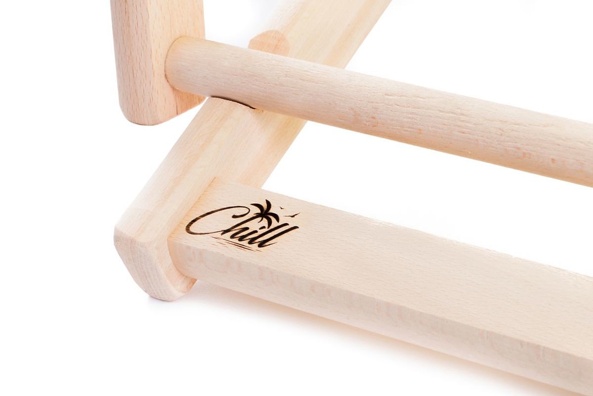 Die Buchenlatten, aus denen die Struktur besteht, sind glatt geschliffen und gefräst, damit sich Kinder nicht verletzen können. Sie können die Liege einfach und schnell zusammenklappen und transportieren.