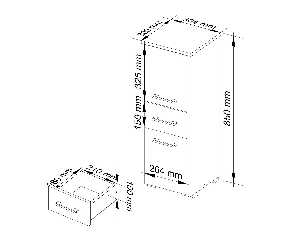 Der stehende Badezimmerschrank ist ein universelles Möbelstück für große und kleine Badezimmer. Er kann neben dem Waschbecken, der Dusche oder der Waschmaschine platziert werden. Dank seiner Abmessungen und Platzierungsmöglichkeiten füllt er auch ungenutzte Ecken im Badezimmer aus. Der stehende Badezimmerschrank in Eiche Sonoma mit weißer Front zeichnet sich durch ein elegantes Design aus. Gut gewählte Farbkombinationen ermöglichen es, dass der Schrank mit Fliesen und Terrakotta in jeder Farbe sowie mit klassischer und moderner Ausstattung harmoniert. Die Säule des Badezimmerschranks hat drei bequeme und leicht zu öffnende breite Türen mit ergonomischen Griffen. Geräumige und tiefe Regale und eine Schublade können zur Aufbewahrung von Handtüchern, Reinigungsmitteln oder Kosmetika wie Parfümflakons und Rasierutensilien genutzt werden. Das Möbelstück ist aus strapazierfähigem, gegen Beschädigungen und Abrieb beständigem laminiertem Plattenmaterial gefertigt. Strapazierfähige, gegen Verfärbungen beständige ABS-Kanten, mit denen die Kanten des Schranks versehen sind, schützen das Möbelstück zusätzlich vor Beschädigungen.