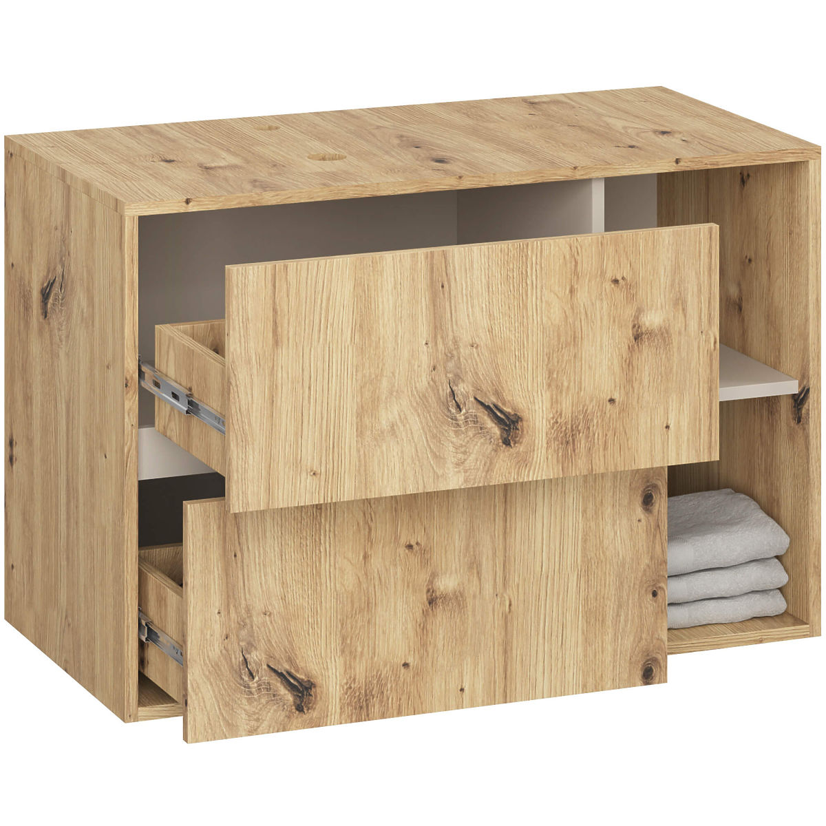 Banaby.de » Kindermöbel / Kinderkommoden und Schränke / Kinderkleiderschränke / BADEZIMMERSCHRANK UNTER DEM WASCHBECKEN MIT LÖCHERN VAMI W90 UM 2SZ 2P EICHE ARTISAN / KASCHMIR