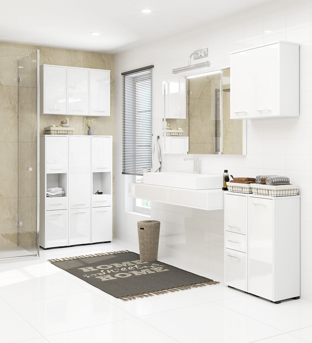 Der Hängeschrank ist eines unserer vielen Designs, die sich sowohl in aktuelle Trends als auch in die Vorlieben unserer Kunden hervorragend einfügen. Die weiße Farbe, derzeit als die modischste angesehen und oft von Personen gewählt, die moderne Innenräume schaffen möchten, besticht auch durch ihre praktische Nutzung sowohl in Nutz- als auch Wohnräumen. Die einfache Montage und der tägliche Gebrauch des Schranks lassen sich hervorragend mit weiteren Elementen dieser Kollektion kombinieren, die Sie im Rahmen unserer Dienstleistungen erwerben können. Der Badezimmer-Hängeschrank ist in unserem Geschäft zu einem sehr attraktiven Preis erhältlich. Es ist erwähnenswert, dass das Möbelstück leicht zu reinigen ist, was ebenfalls ein unbestreitbarer Vorteil ist. Das Produkt besteht aus zwei Türen und ist aus strapazierfähiger laminierter Platte mit einer Dicke von 16 Millimetern gefertigt, während seine Kanten mit ABS-Kante umleimt sind. Die ideale Kombination aus Design und Qualität passt sich sicherlich hervorragend in jedes Badezimmer ein.