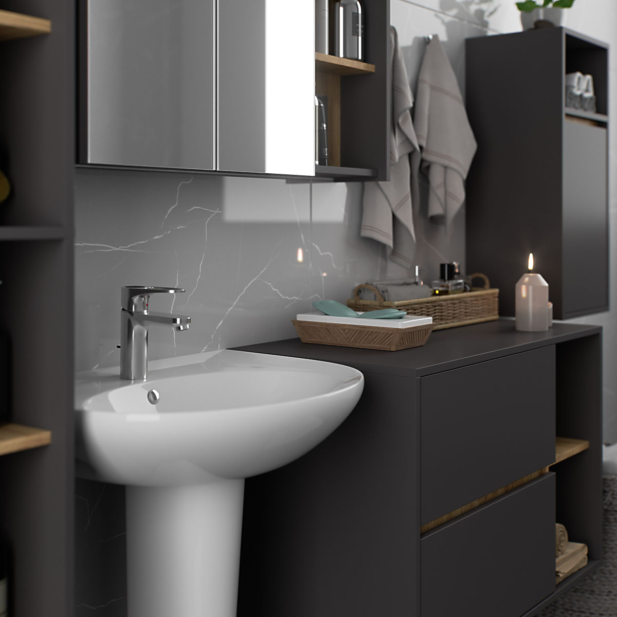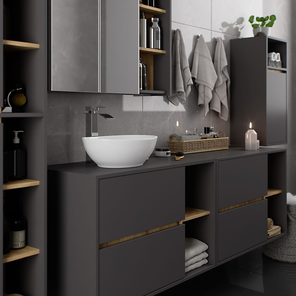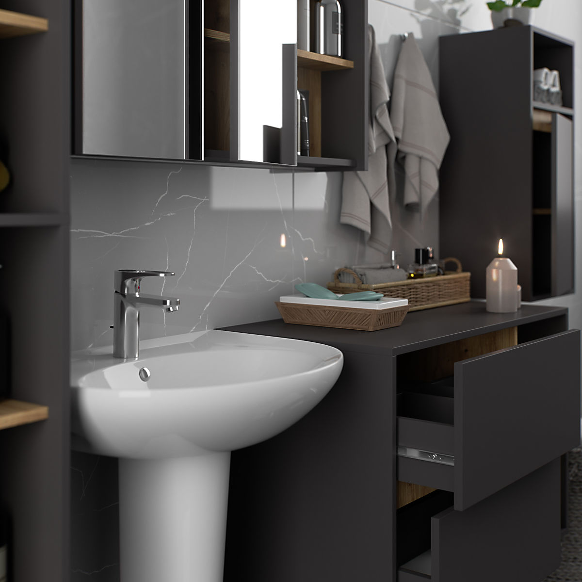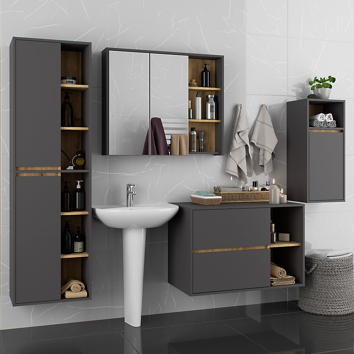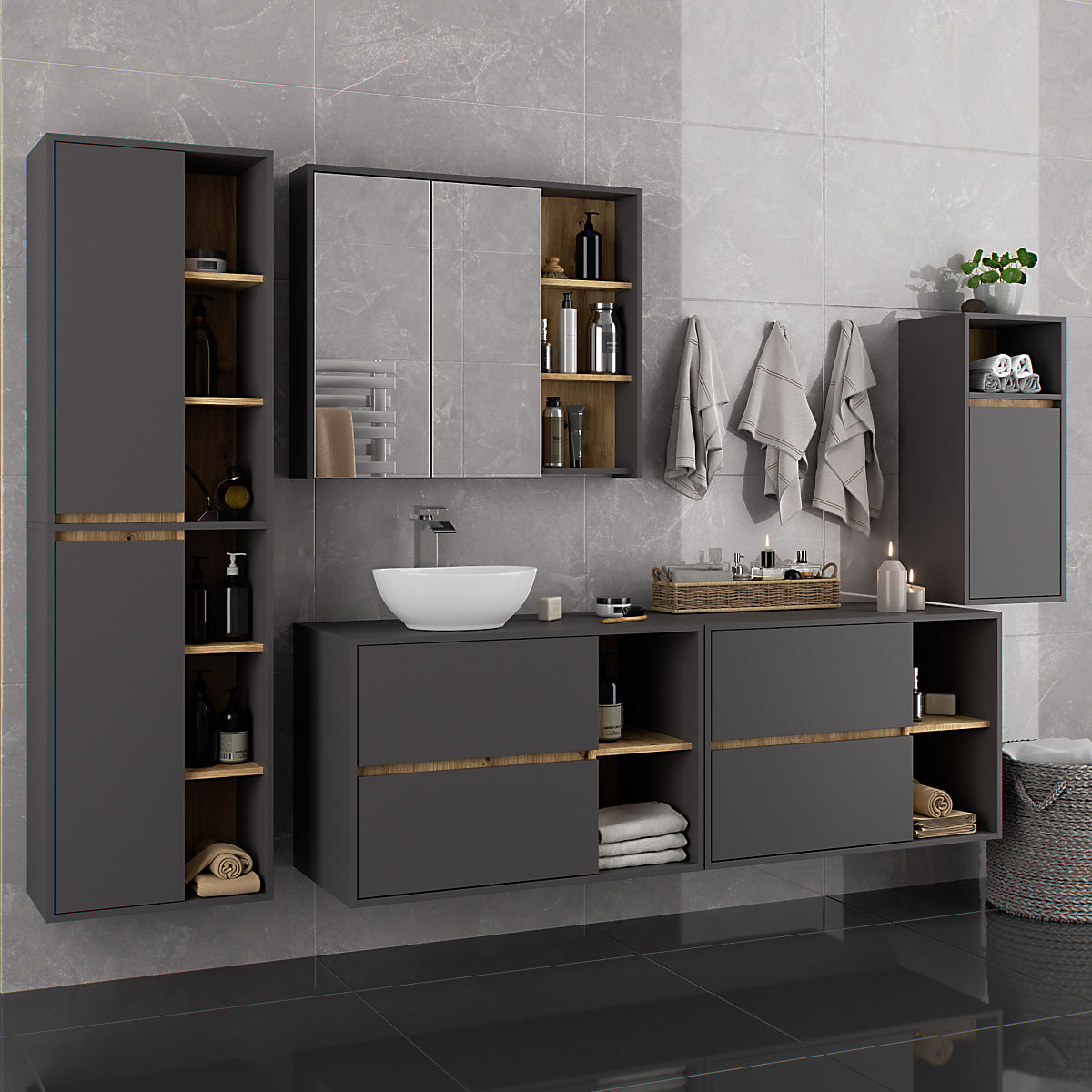 Banaby.de » Kindermöbel / Kinderkommoden und Schränke / Kinderkleiderschränke / HÄNGENDER BADEZIMMERSCHRANK VAMI W35 1D 1W GRAPHITGRAU / EICHE ARTISAN