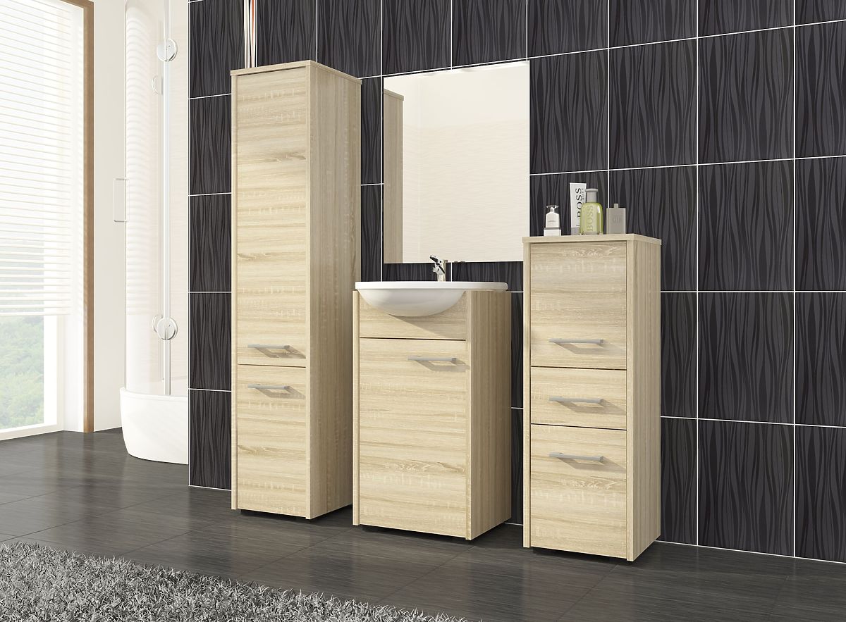 Banaby.de » Kindermöbel / Kinderkommoden und Schränke / Kinderkleiderschränke / HOHER BADEZIMMERSCHRANK FIN 2 TÜREN EICHE SONOMA